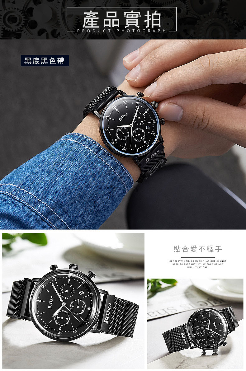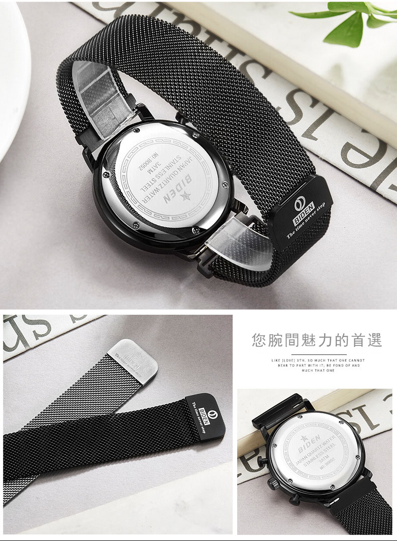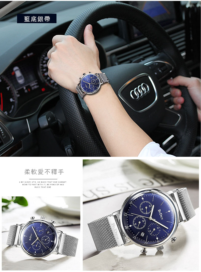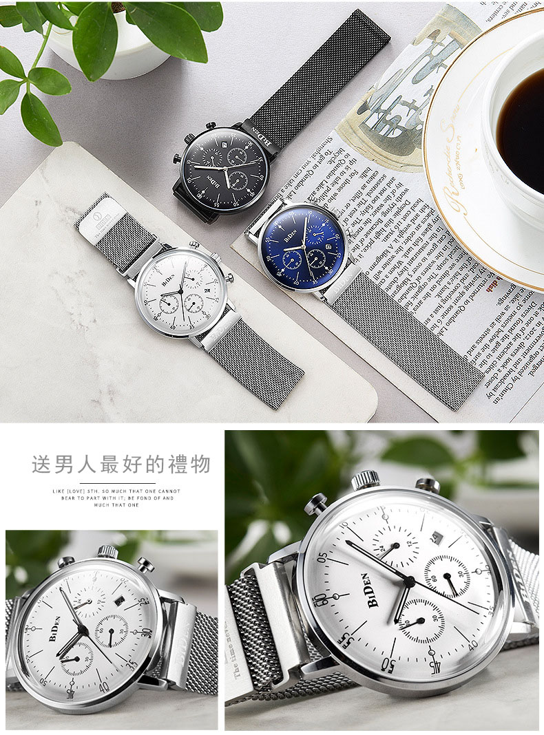 商務簡約石英表潮流六針防水錶米蘭尼斯鋼錶帶Wat45