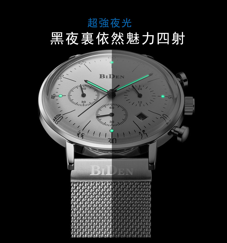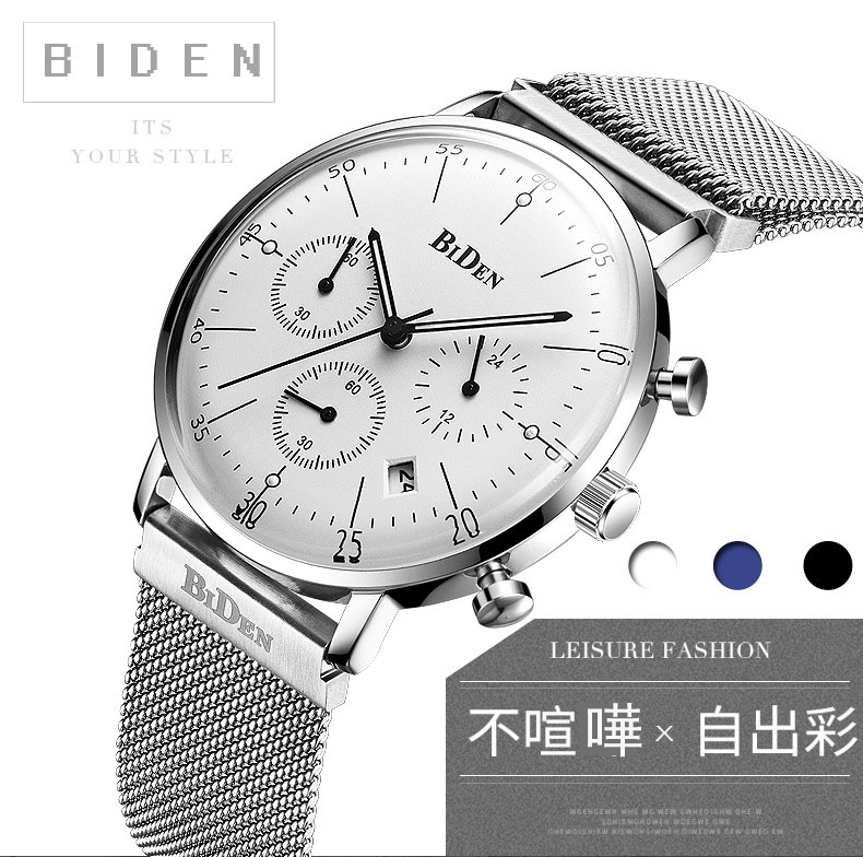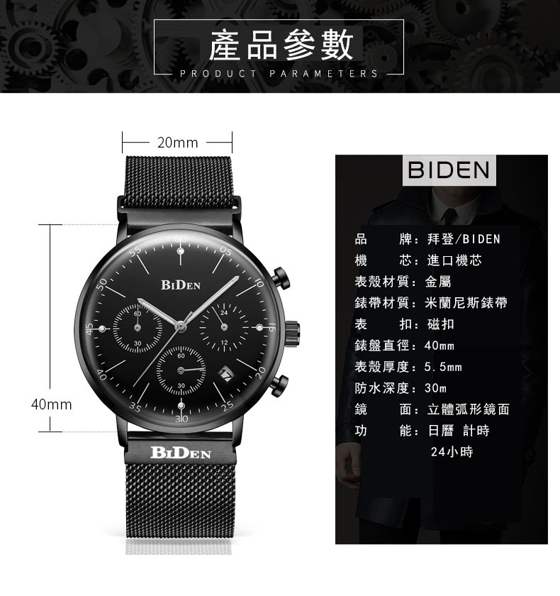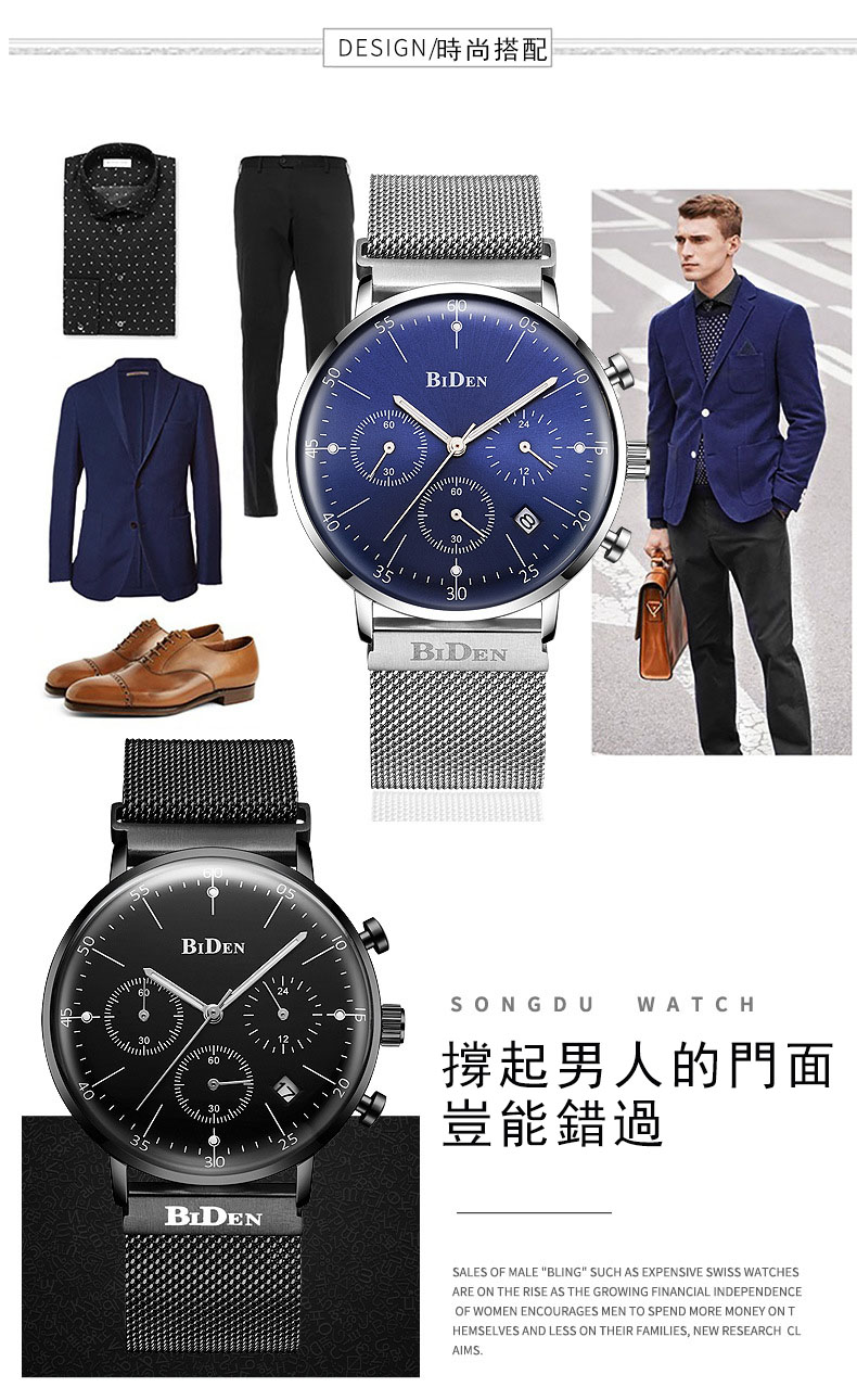 商務簡約石英表潮流六針防水錶米蘭尼斯鋼錶帶Wat45