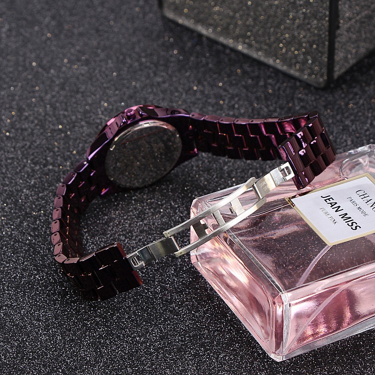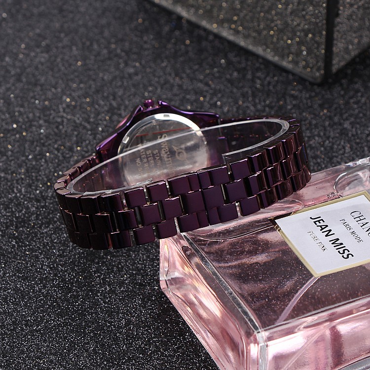 新款 紫色鑲鑽個性耐用不銹鋼錶帶 時尚女士手錶Wat48