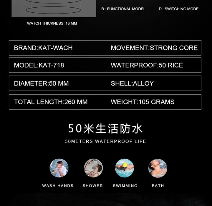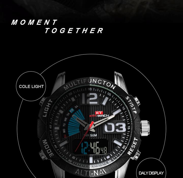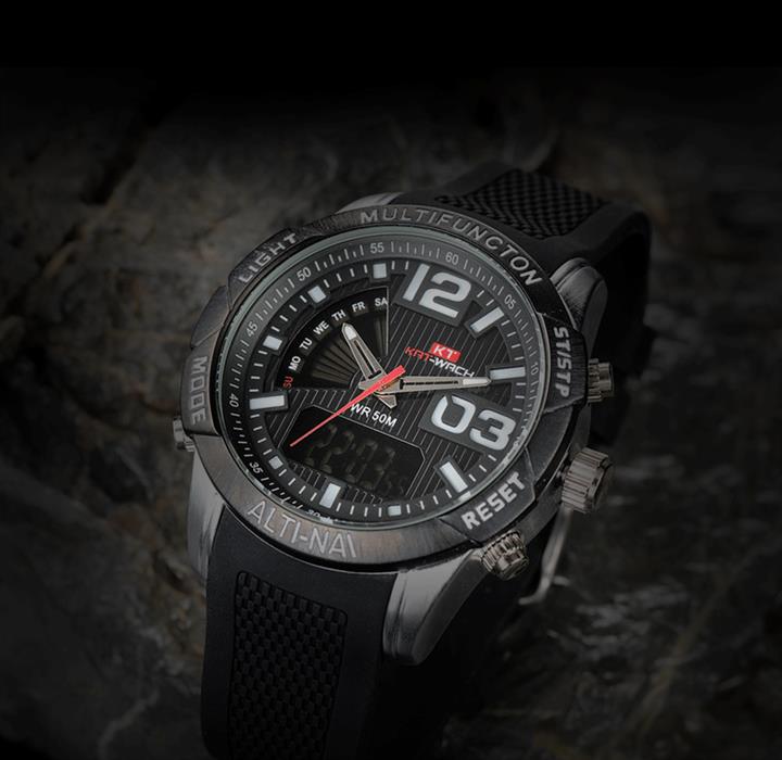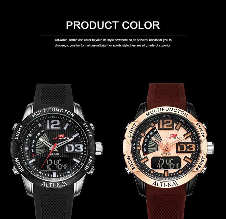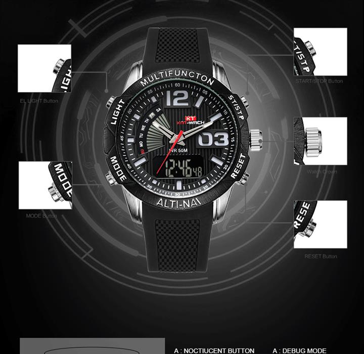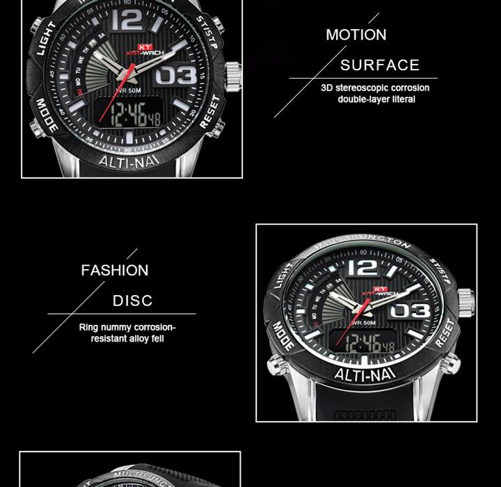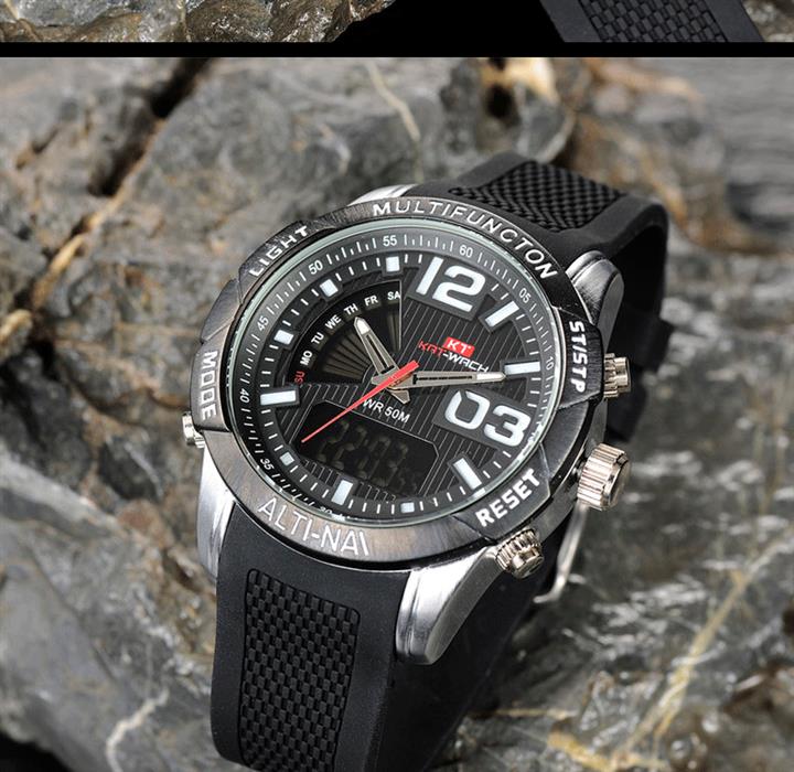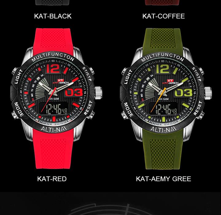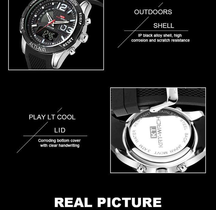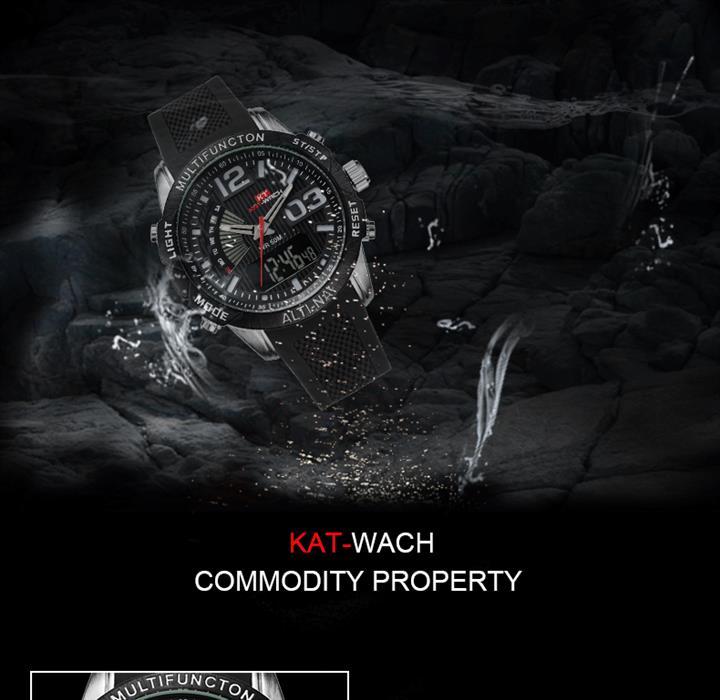 硅膠帶多功能三機芯戶外防水夜光男錶電子錶運動錶wat1137
