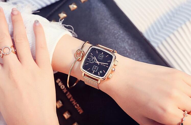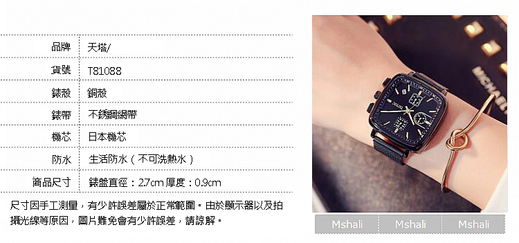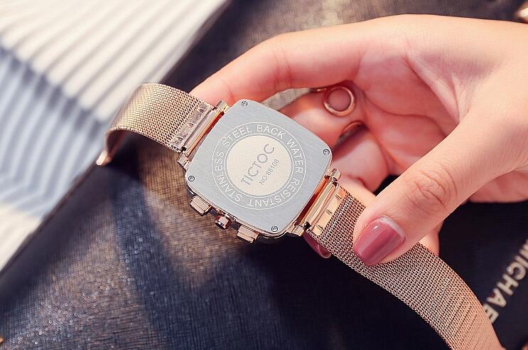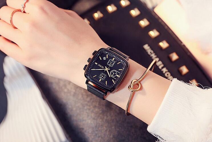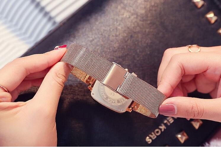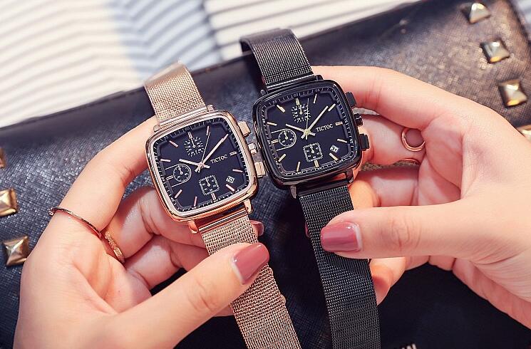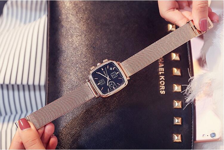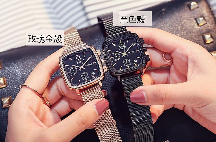 新款爆款 不銹鋼網帶 優雅大氣 時尚個性六針方形女士手錶Wat63