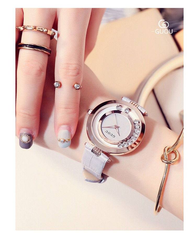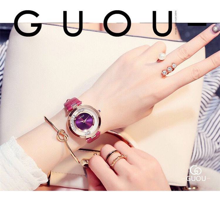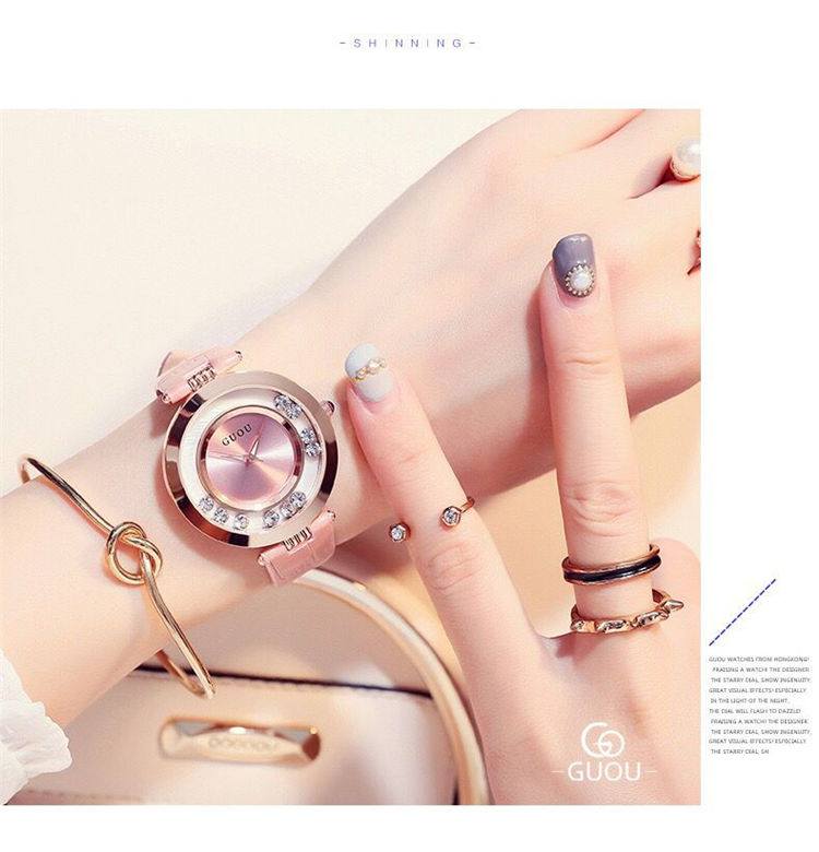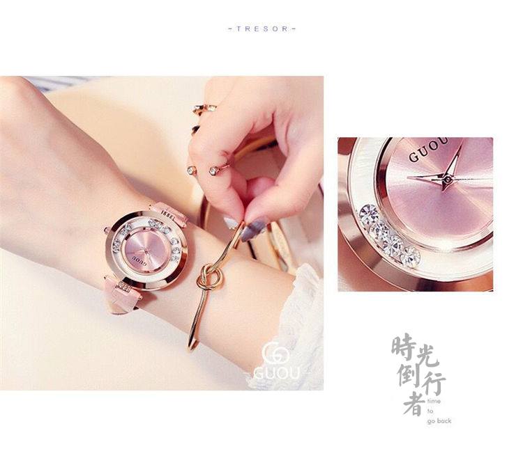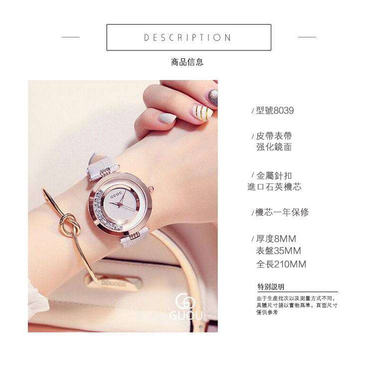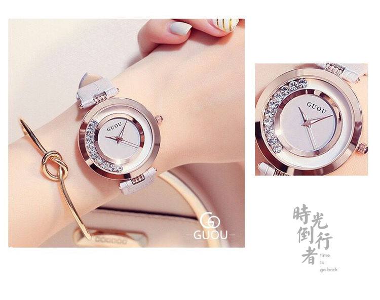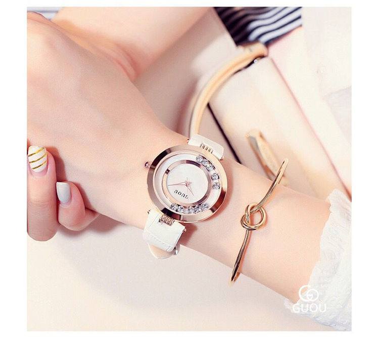 貝母鑲鑽女士手表皮帶石英表女wat123