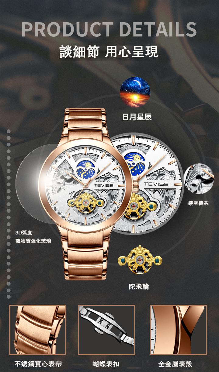 男士陀飛輪夜光防水腕錶 wat966