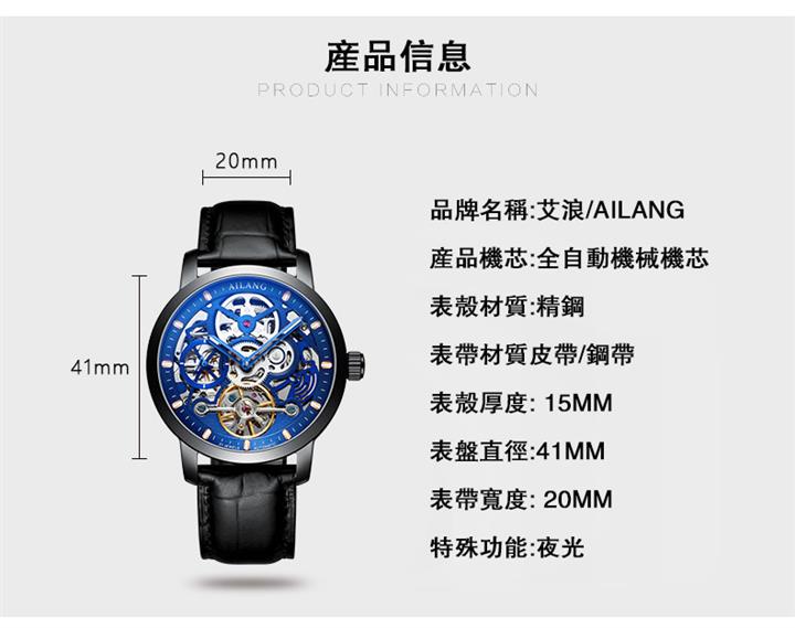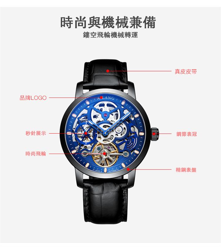 奇洛時新款鏤空手錶男士全自動陀飛輪機械表 Wat1866