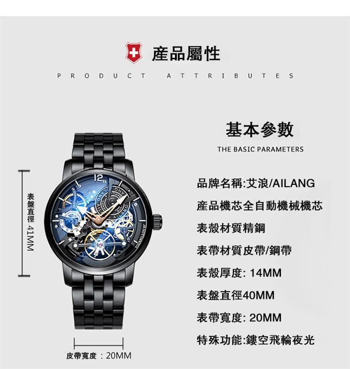 奇洛時新款鏤空手錶男士全自動陀飛輪機械表 Wat1866