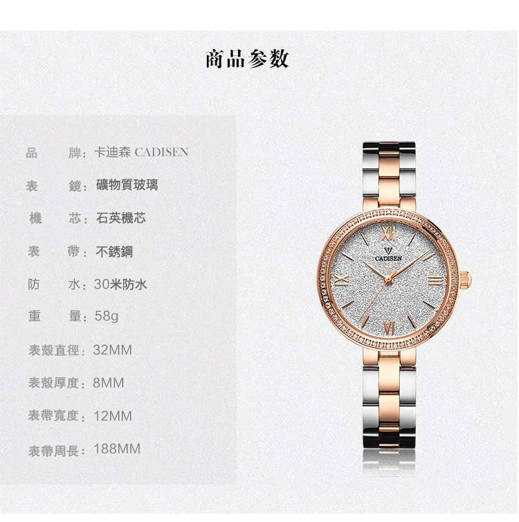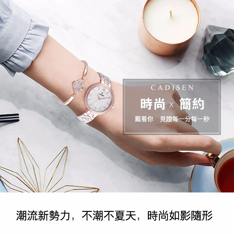 個性鑲鑽石英休閒時尚鋼帶女錶wat121