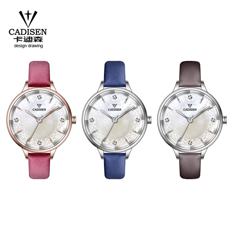 貝母鑲鑽女士手表皮帶石英表女wat123