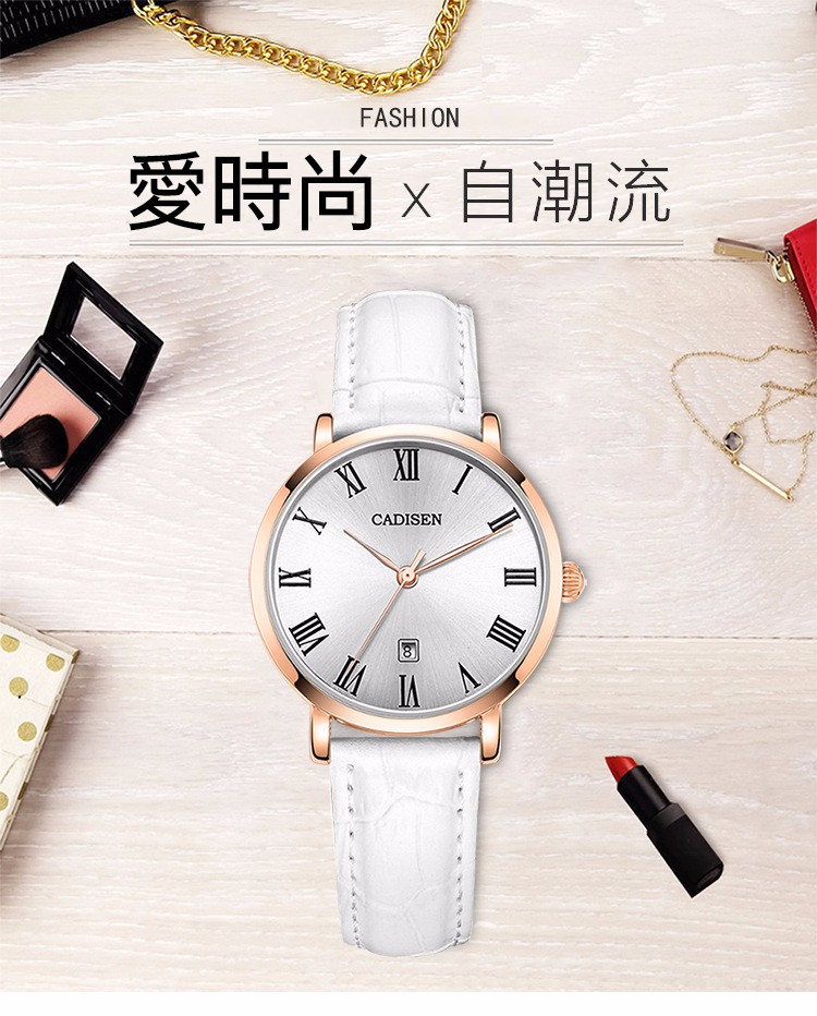 福克斯時尚鑲鑽真皮皮帶防水女錶wat148