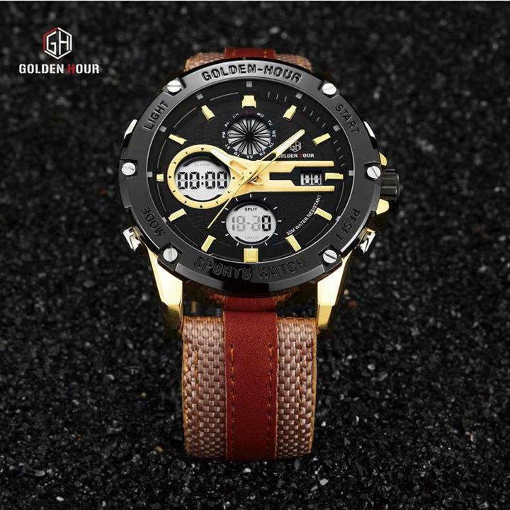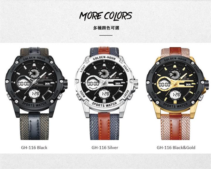 硅膠帶多功能三機芯戶外防水夜光男錶電子錶運動錶wat1137