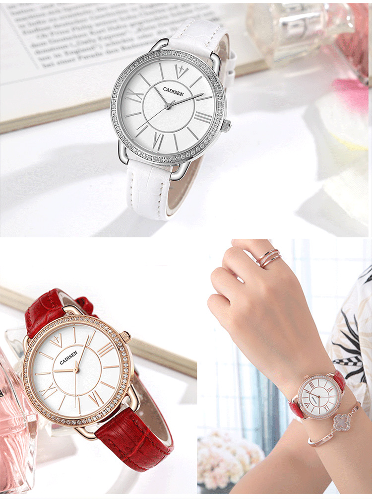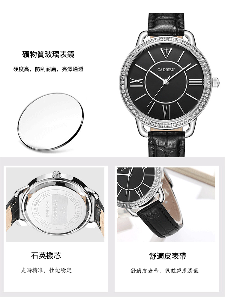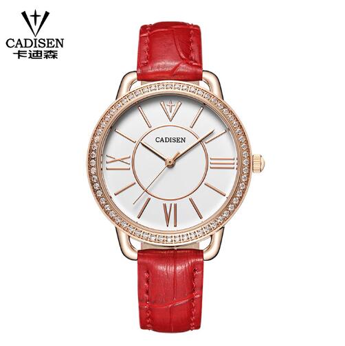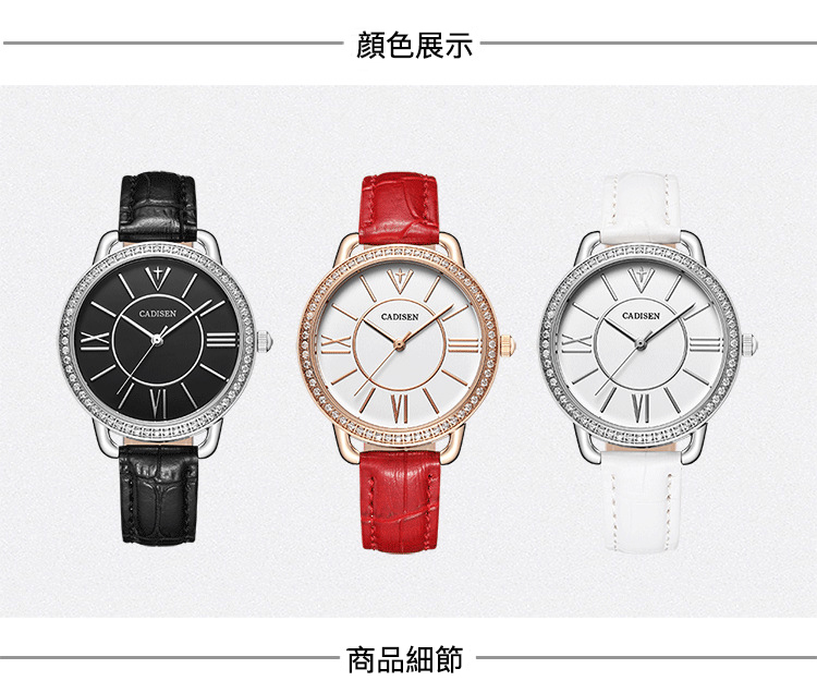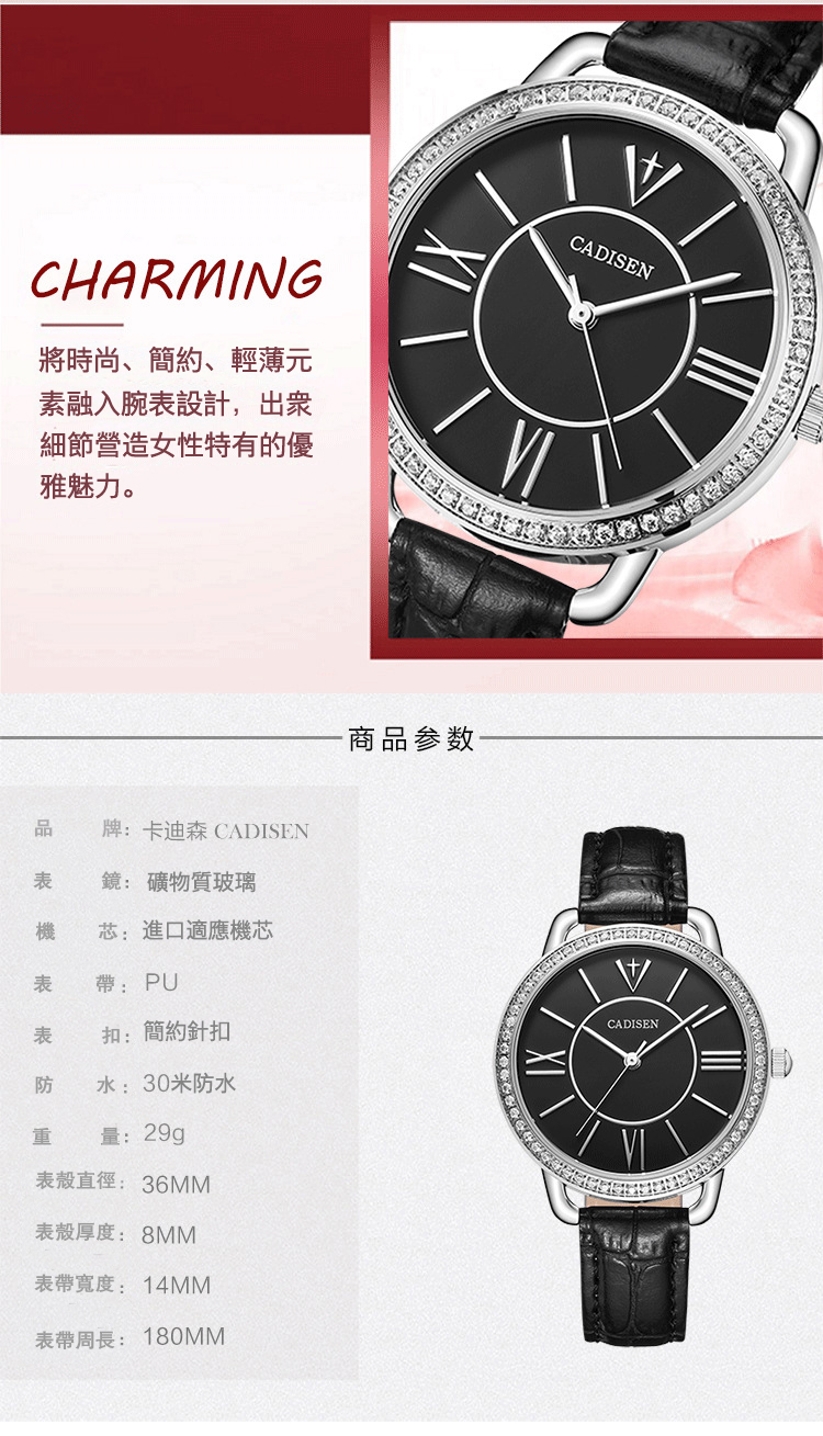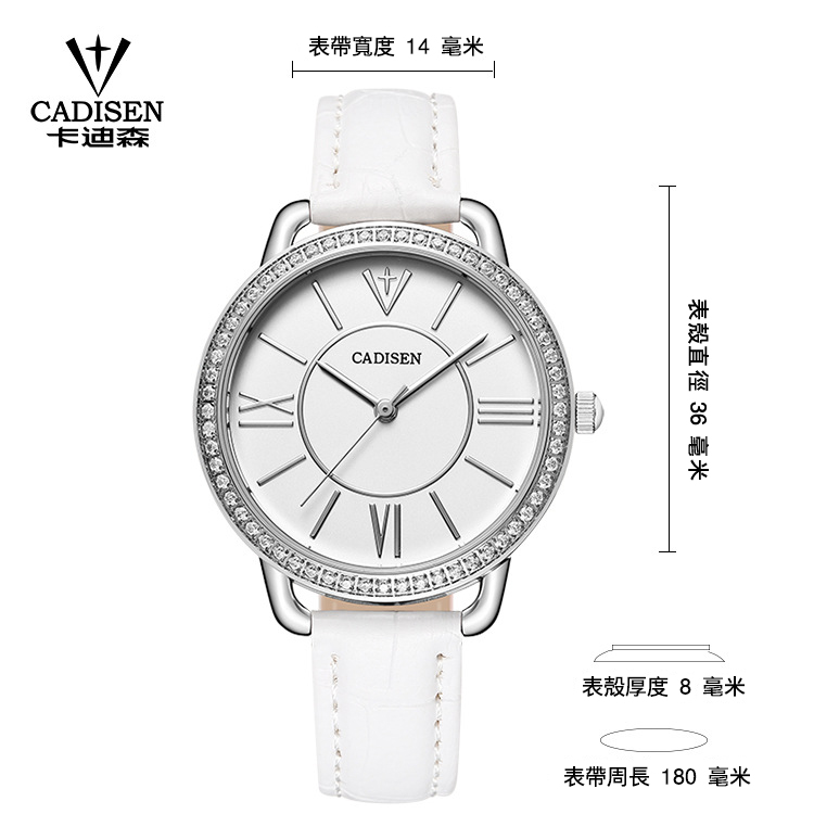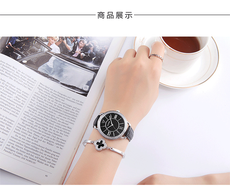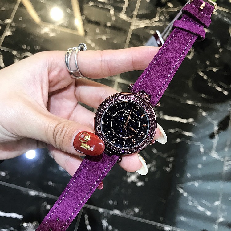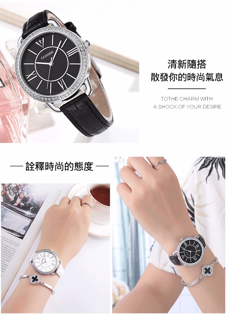 福克斯時尚鑲鑽真皮皮帶防水女錶wat148