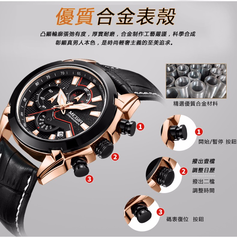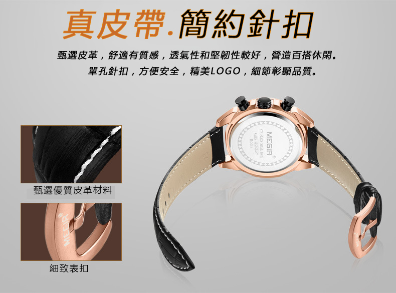 美格尔MEGIR新款多功能防水時尚男士手表wat132