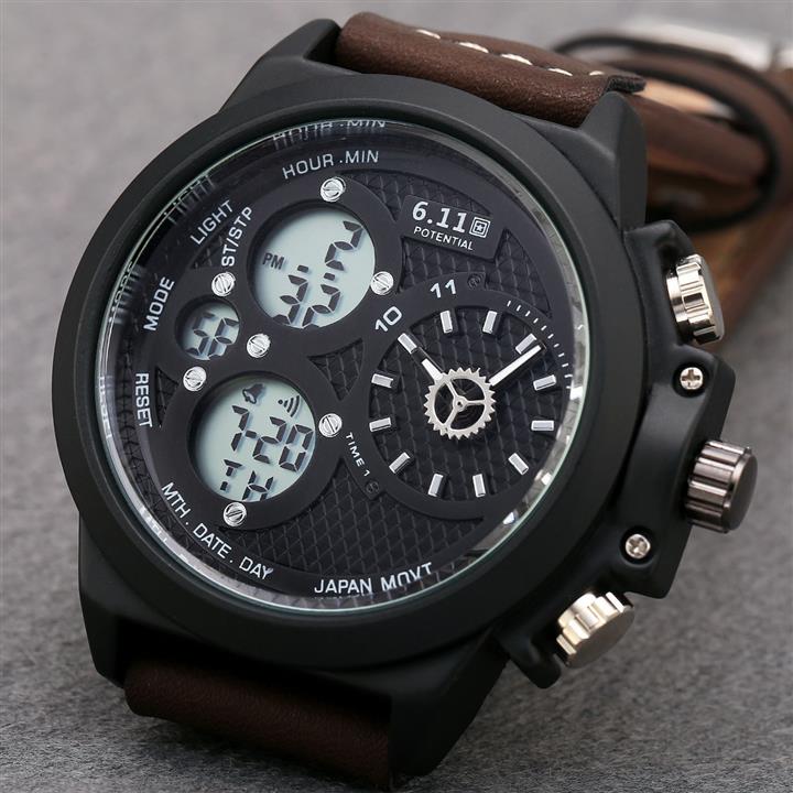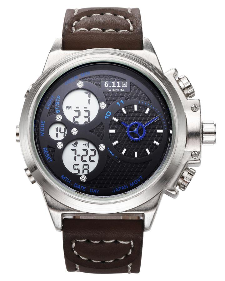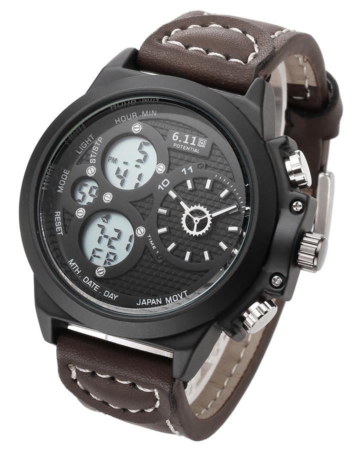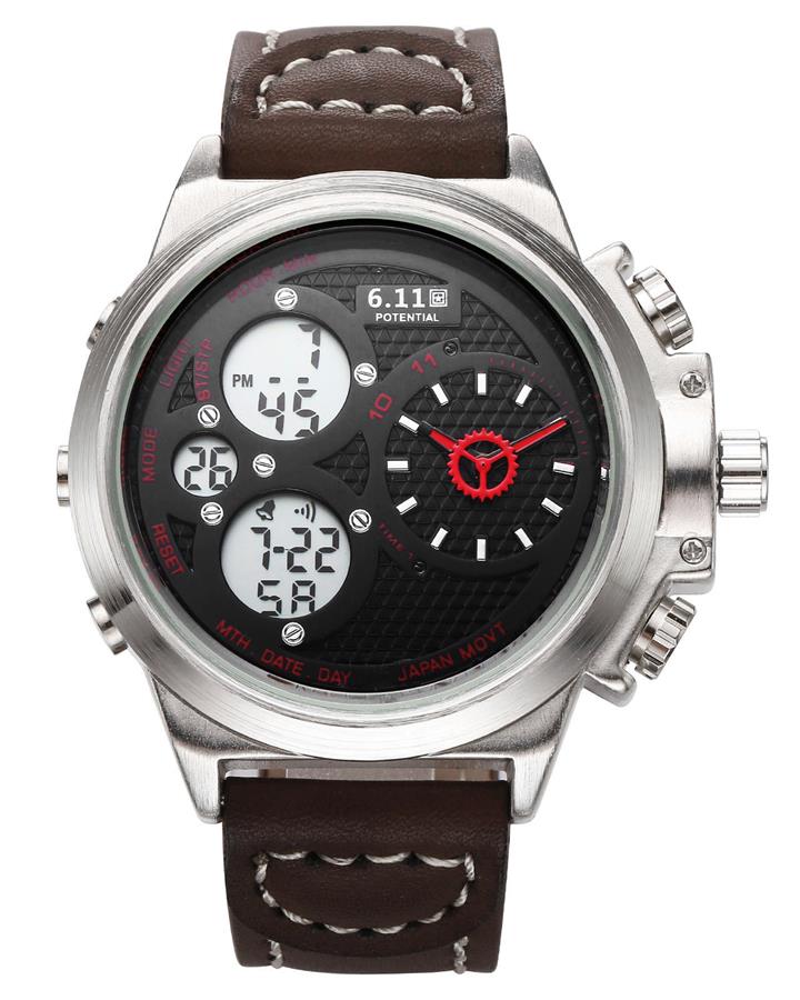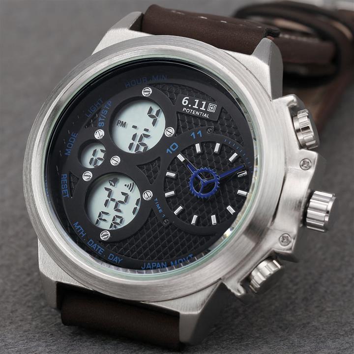 皮带多功能双机芯电子表外贸运动表防水夜光wat1138