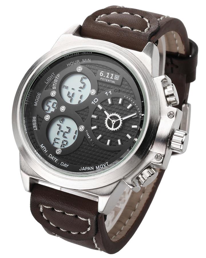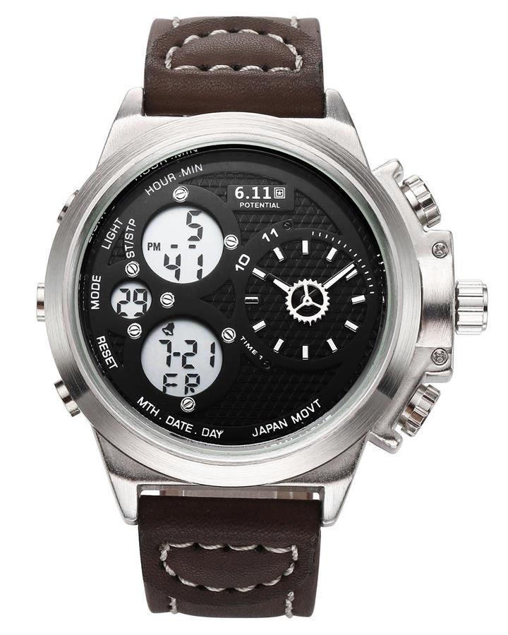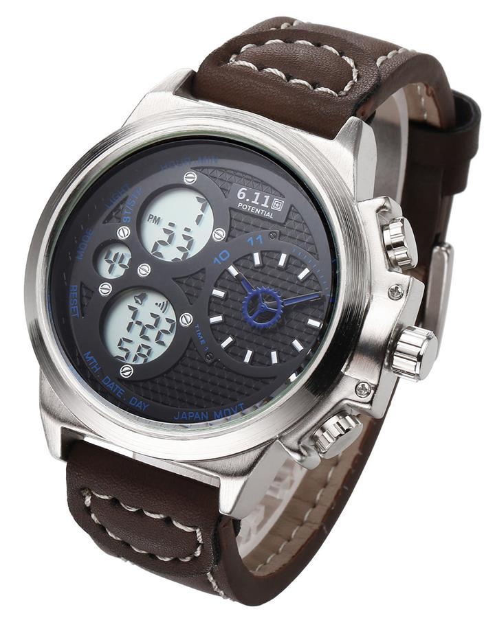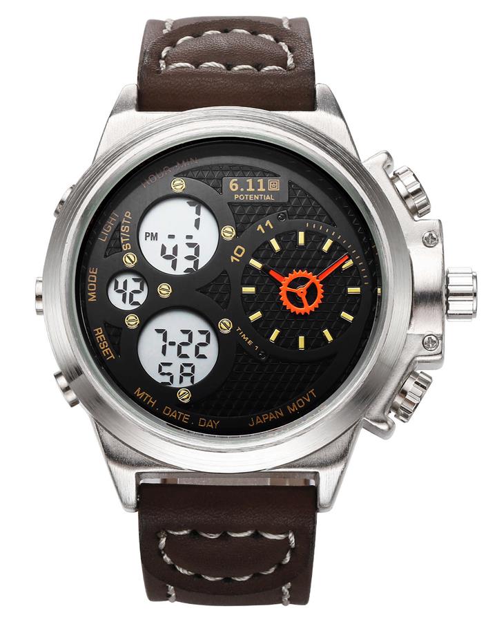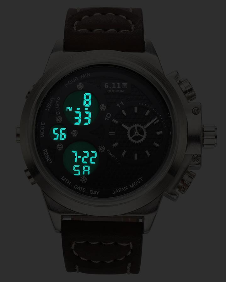 皮带多功能双机芯电子表外贸运动表防水夜光wat1138
