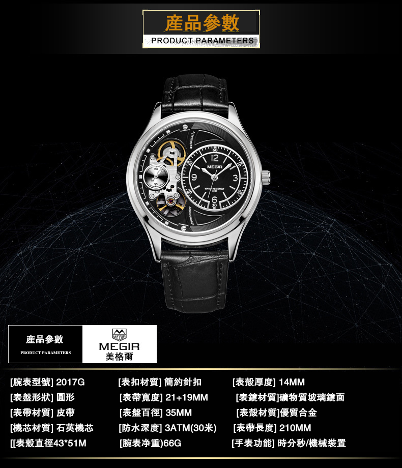 防水多功能石英腕錶wat188