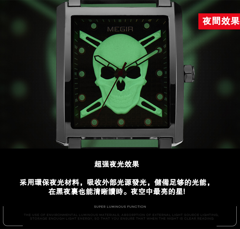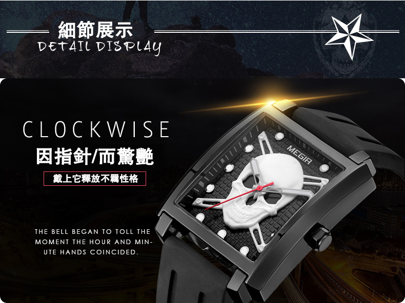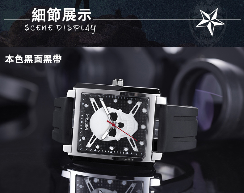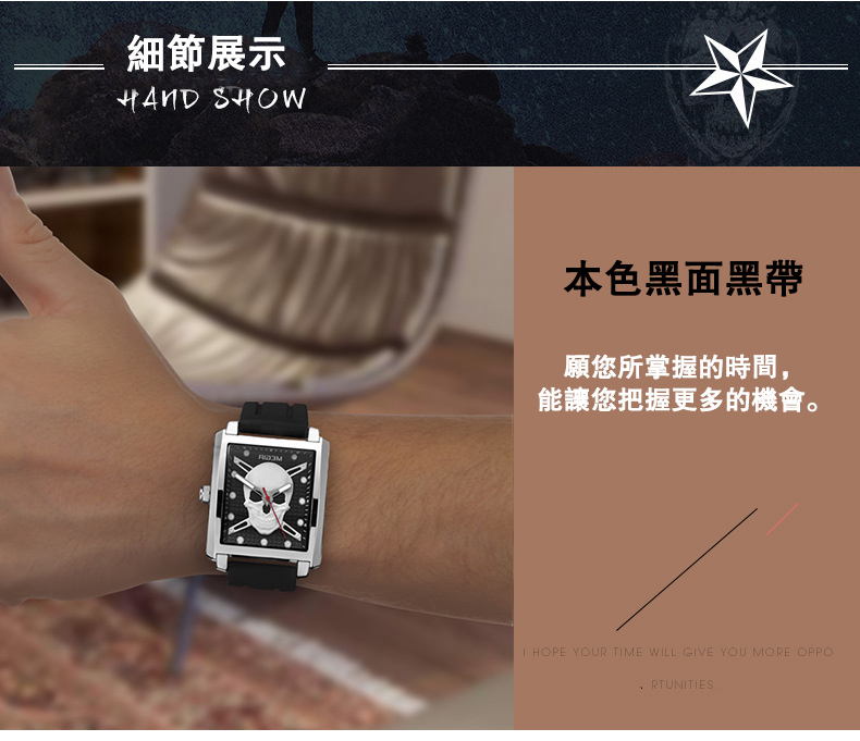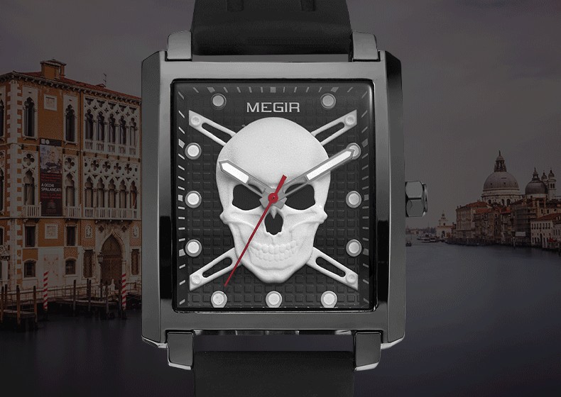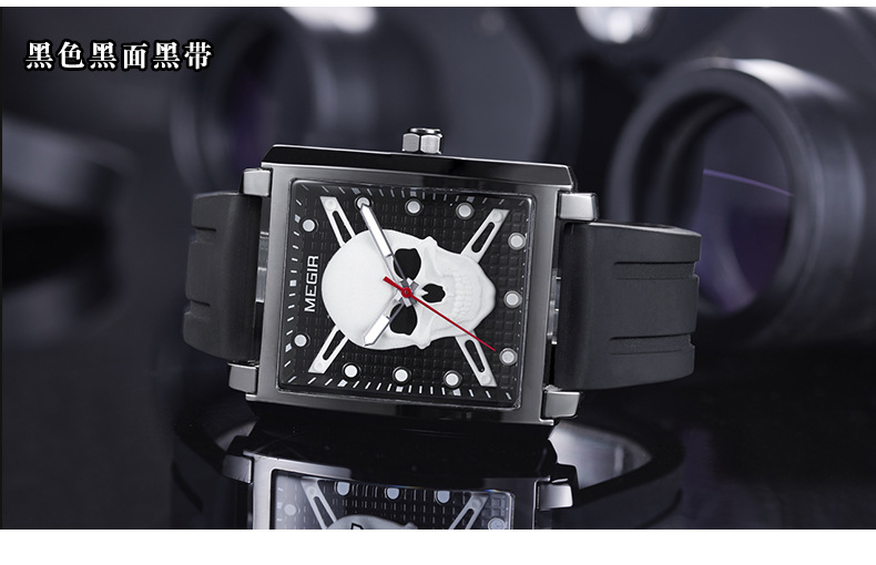 男士方形骷髏腕錶wat186