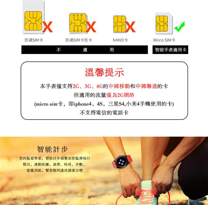 時尚穿戴計步電話插卡智能錶 Wat1327