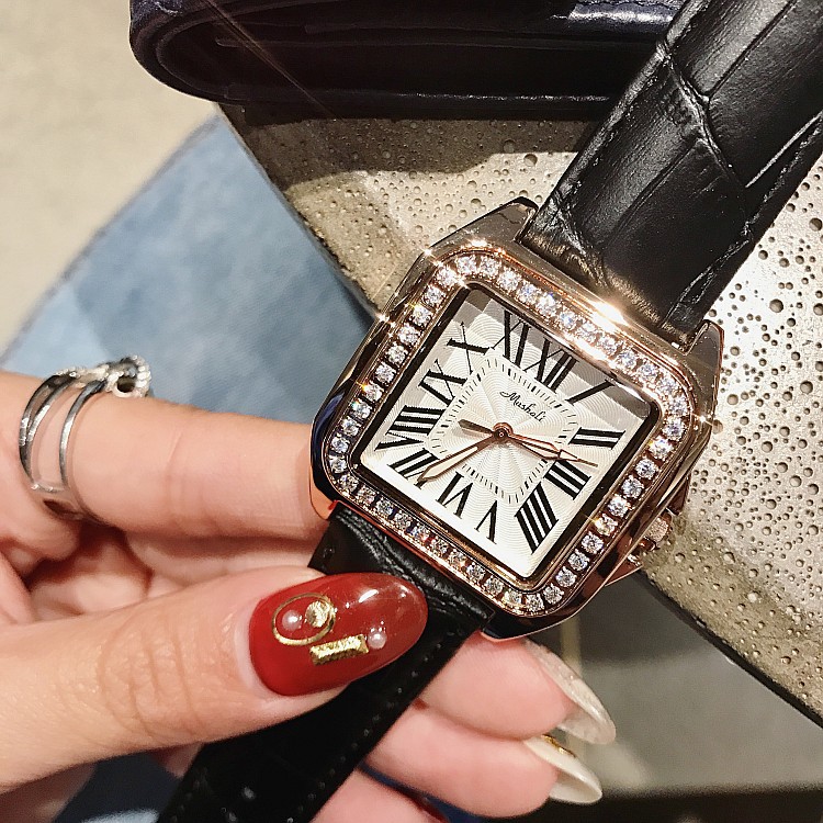 蒂米妮時尚水鑽咖皮女錶 wat261