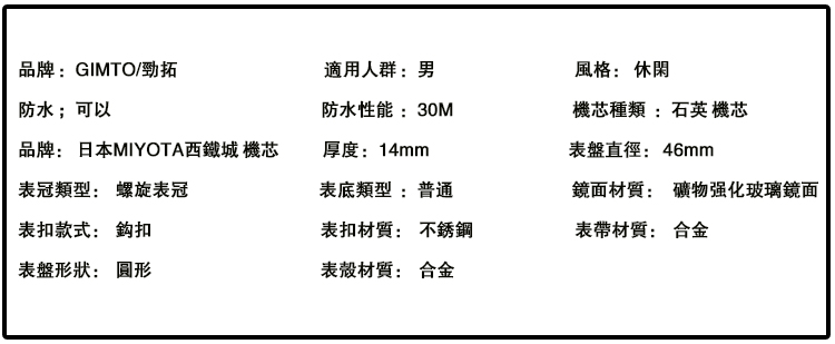 石英高檔防水男錶 wat341