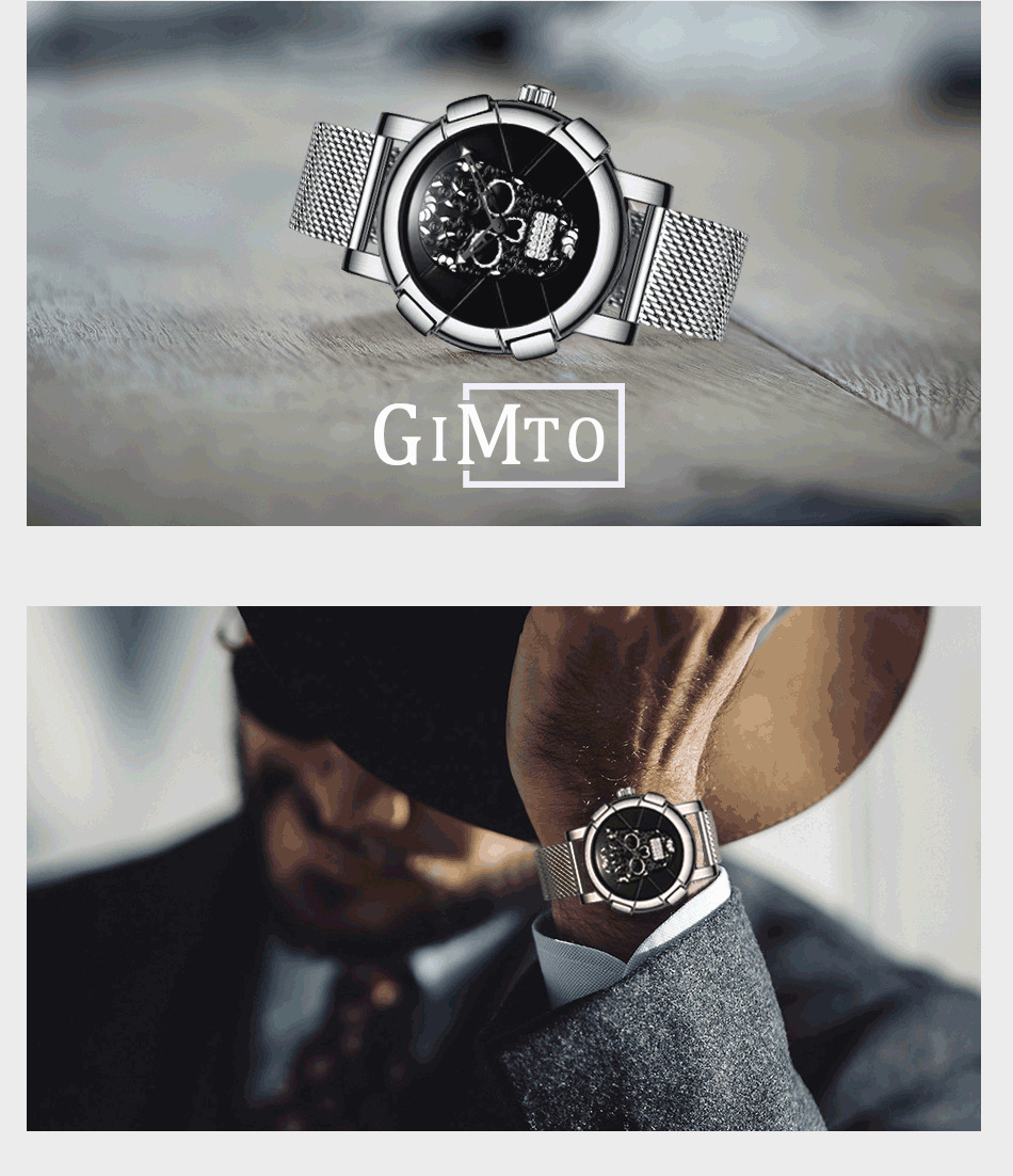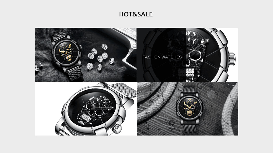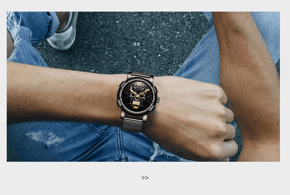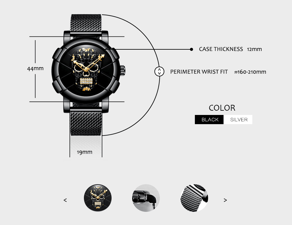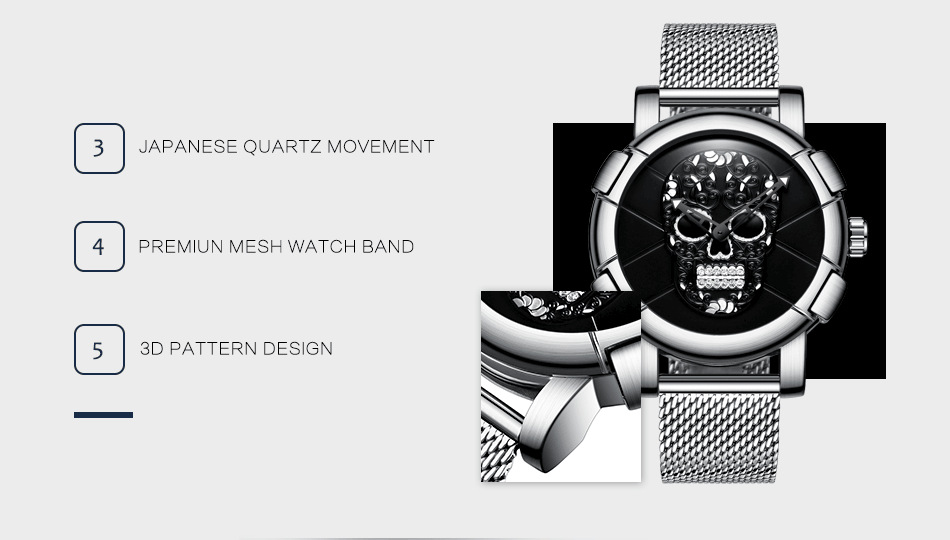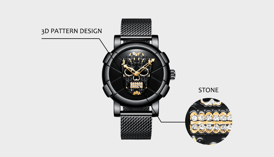 金屬網帶骷髏頭男錶 wat315