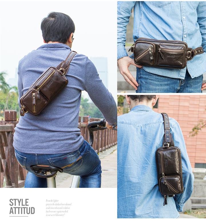 時尚休閒真皮多功能腰包 Bag525