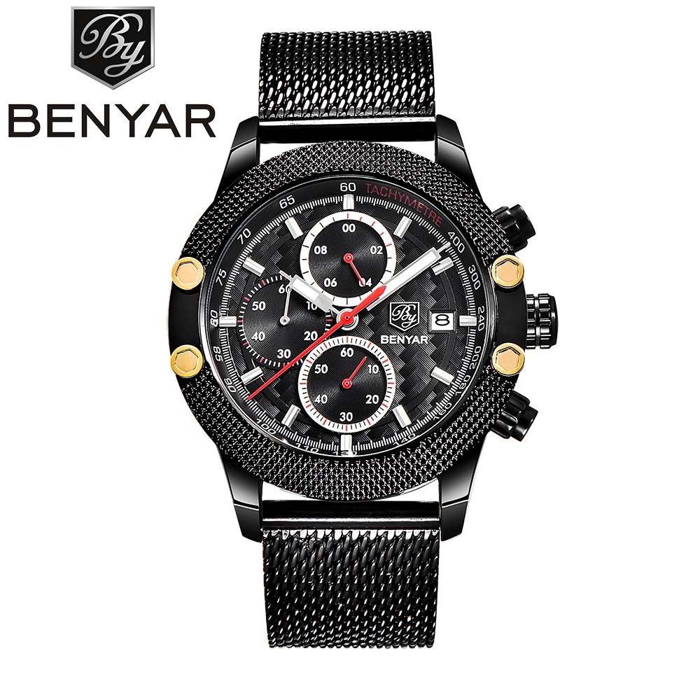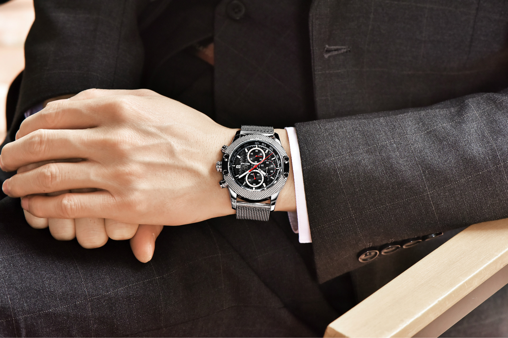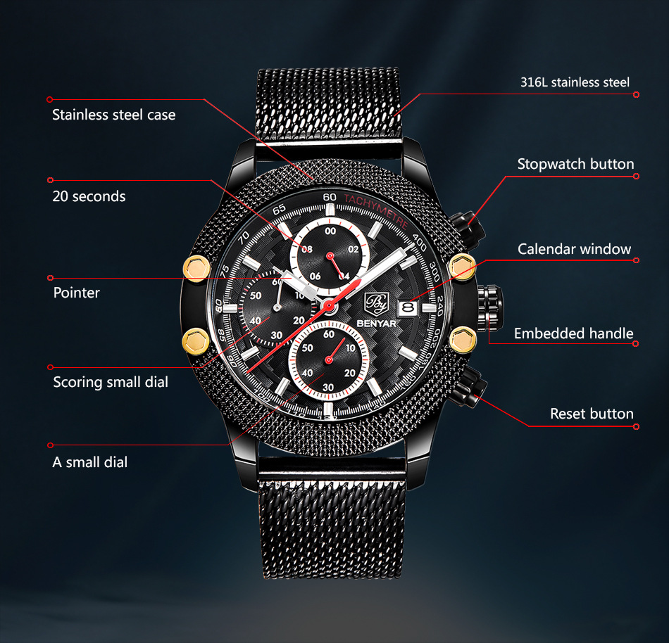 男士三眼錶盤鋼帶手錶 wat353