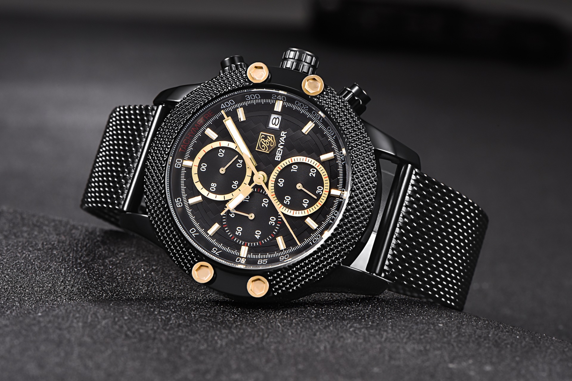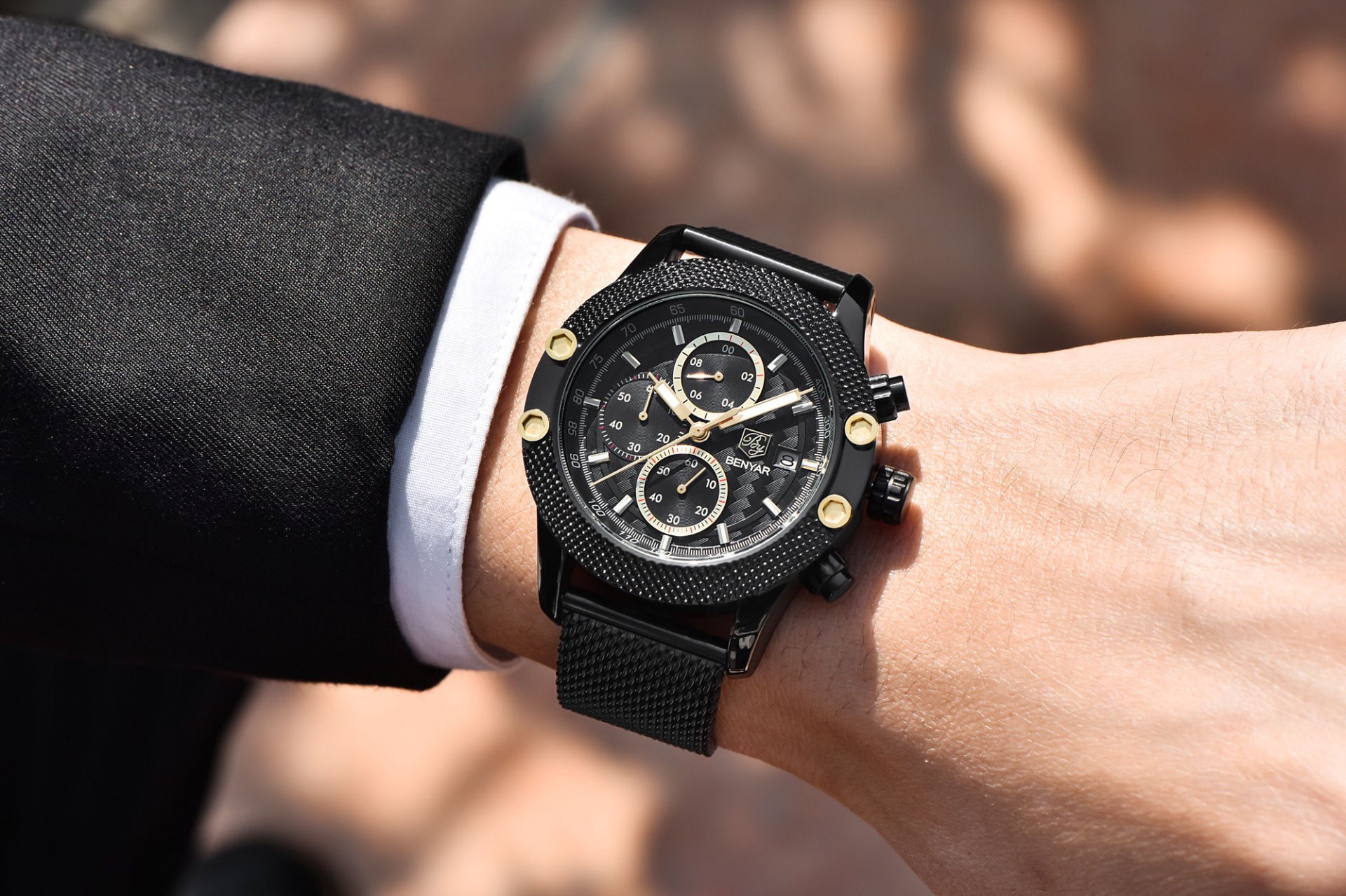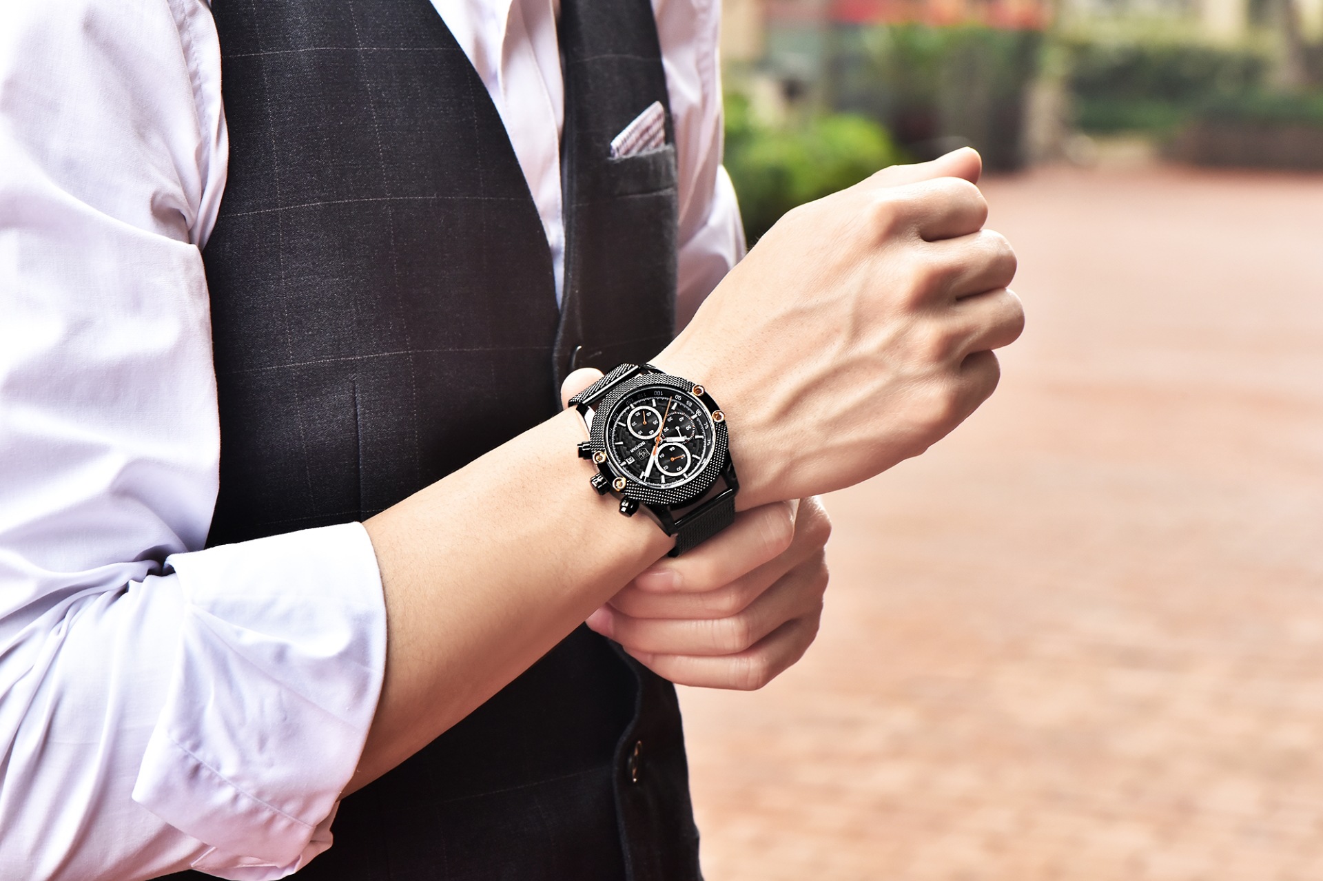 男士三眼錶盤鋼帶手錶 wat353