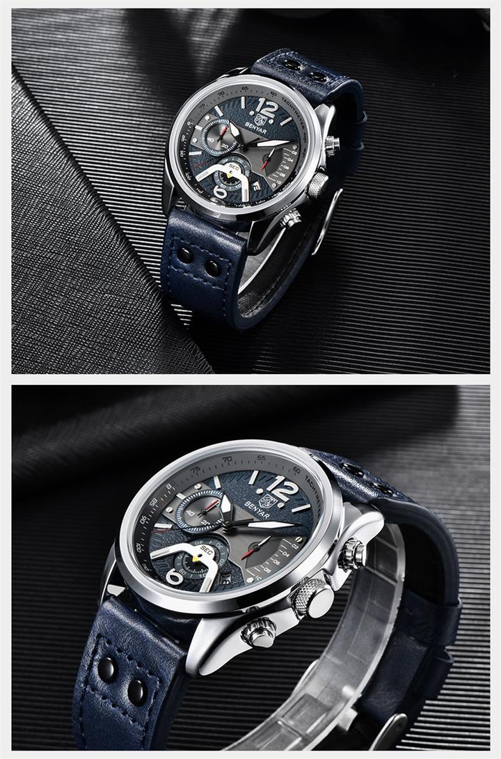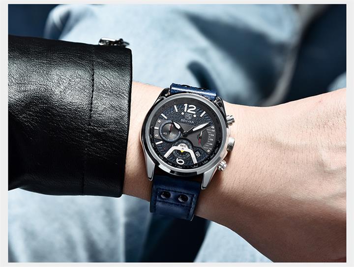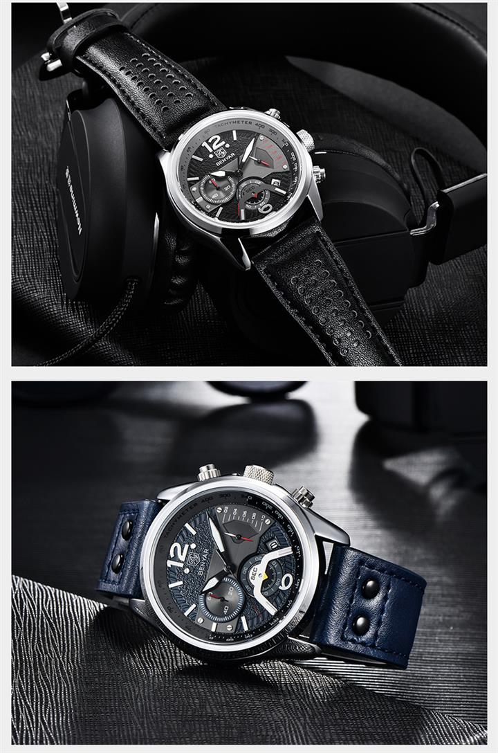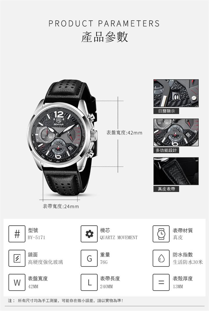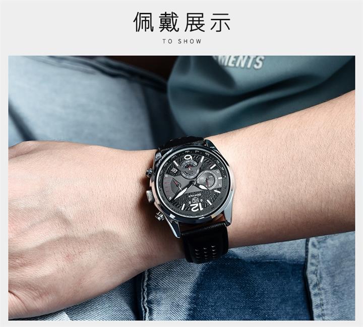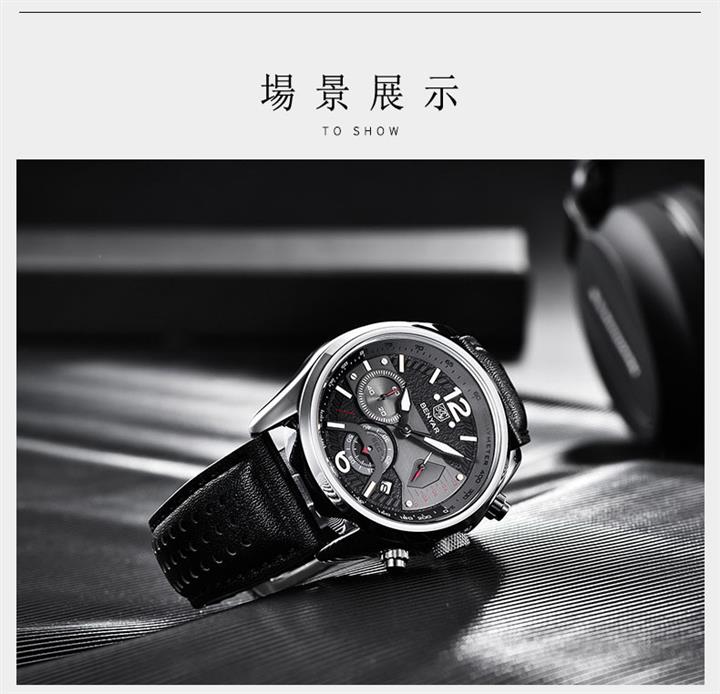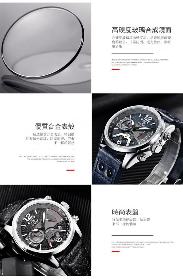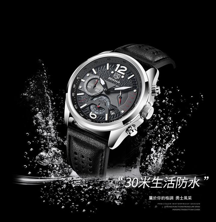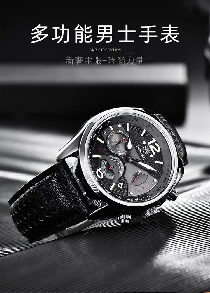 時尚多功能計時真皮石英表 Wat1605
