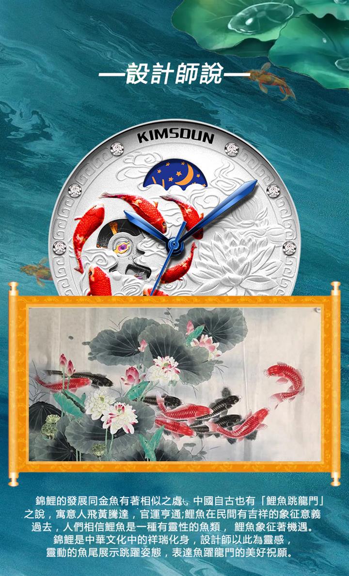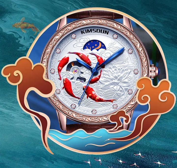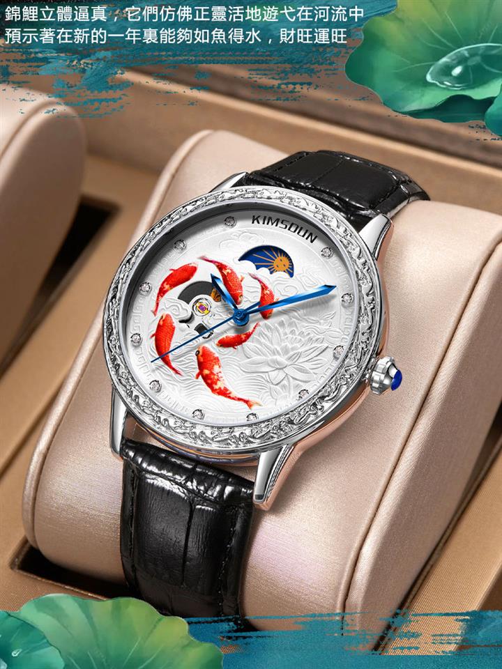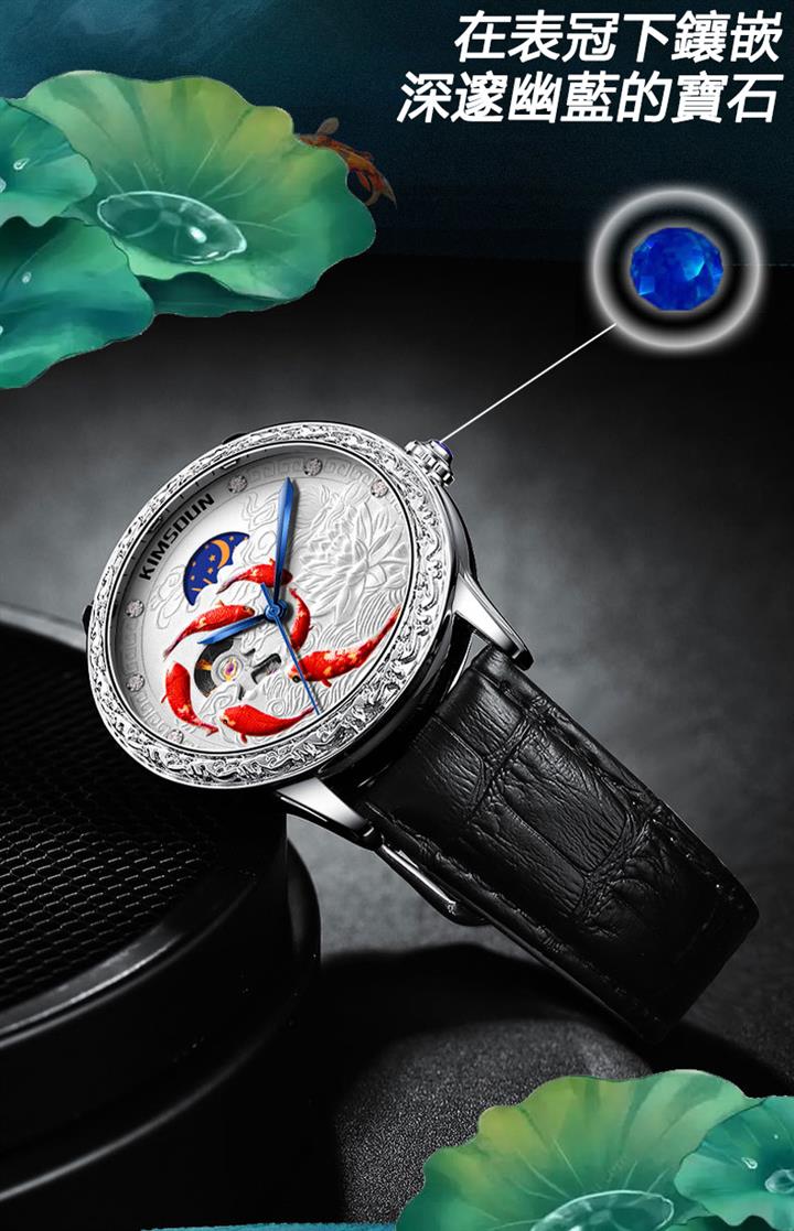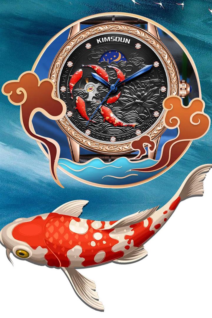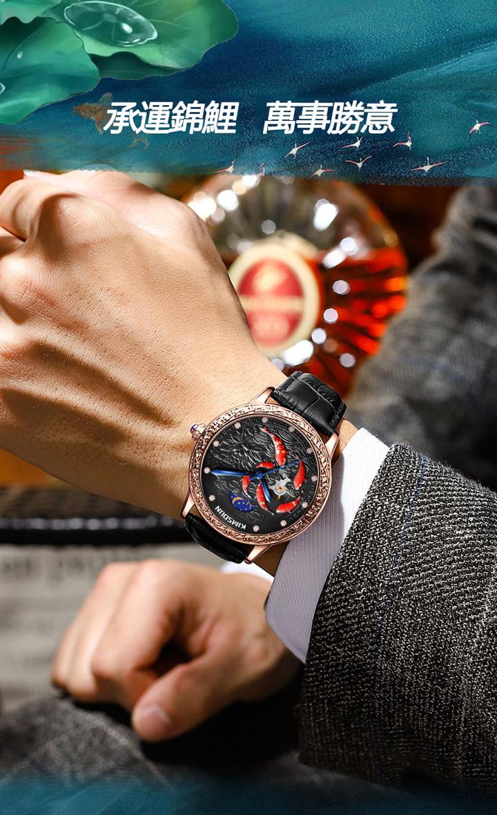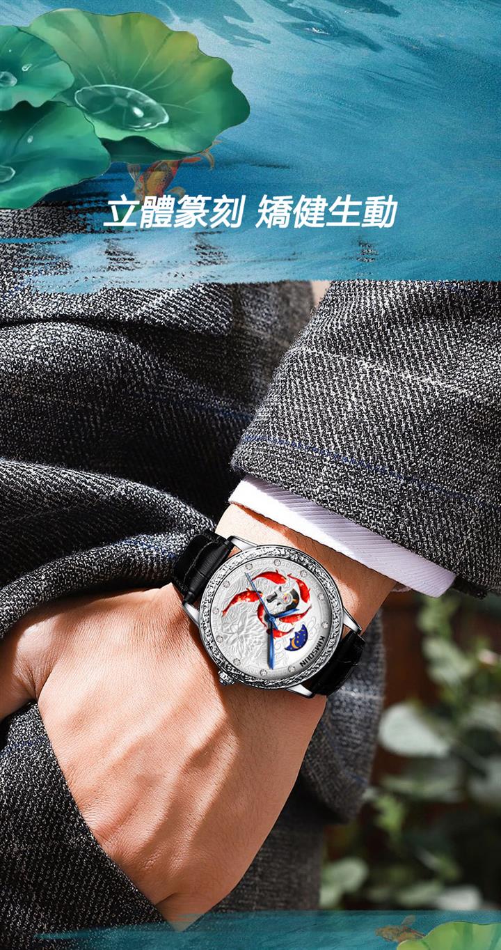 3D浮雕錦鯉鏤空全自動機械表 Wat1859