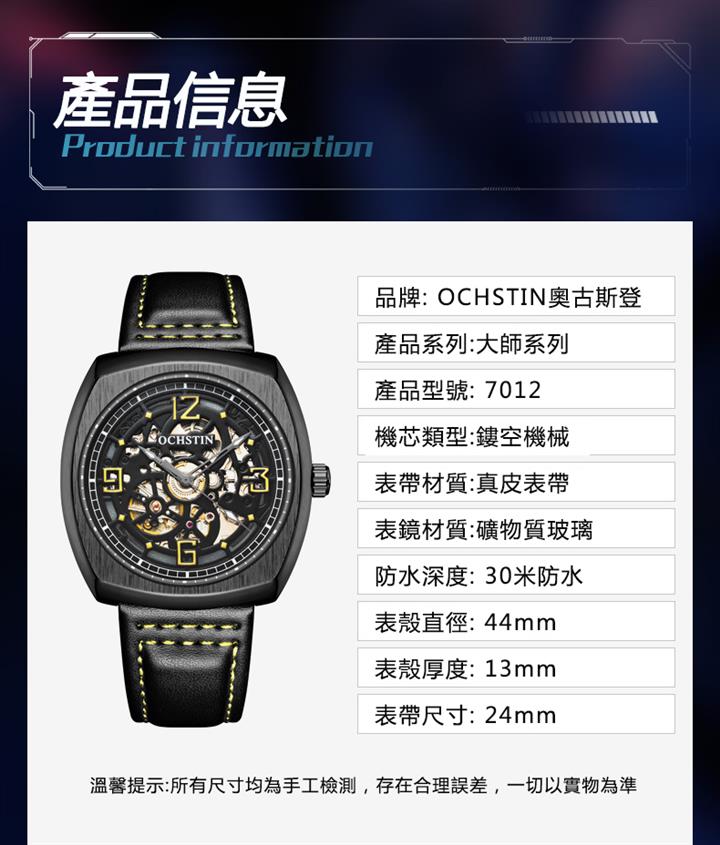 自動機械陀飛輪風格鏤空夜光防水腕錶 wat1845