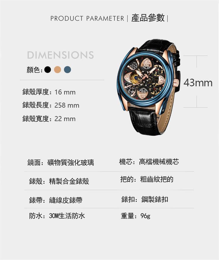 自動機械陀飛輪風格鏤空夜光防水腕錶 wat1845