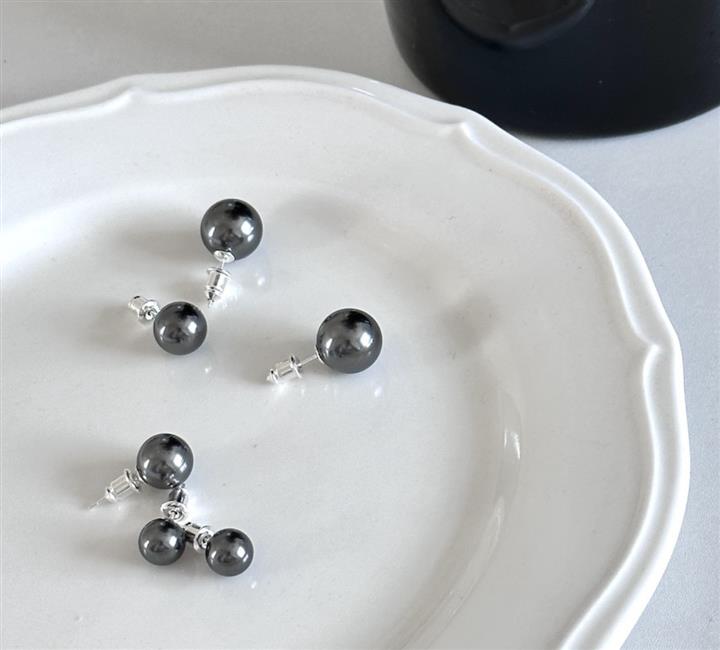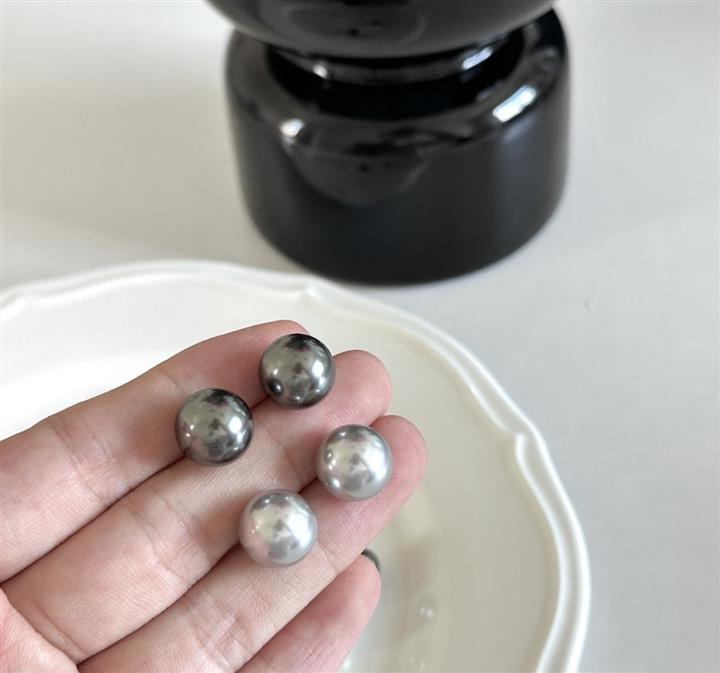黑珍珠耳釘正圓強光施家珍珠S925純銀針jew06