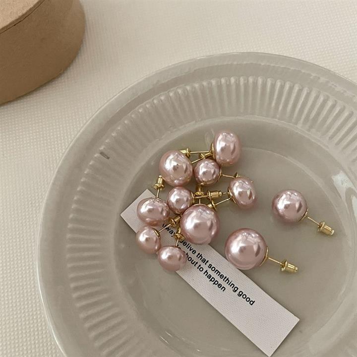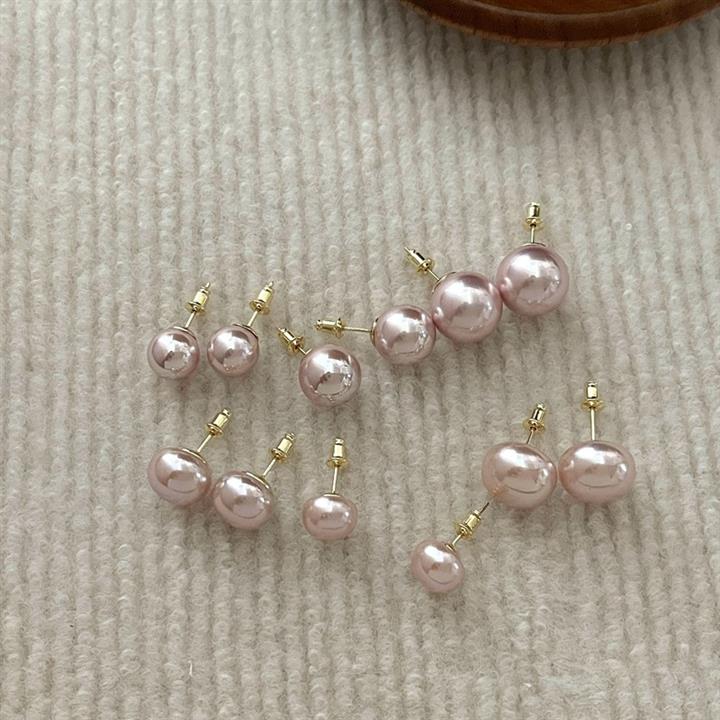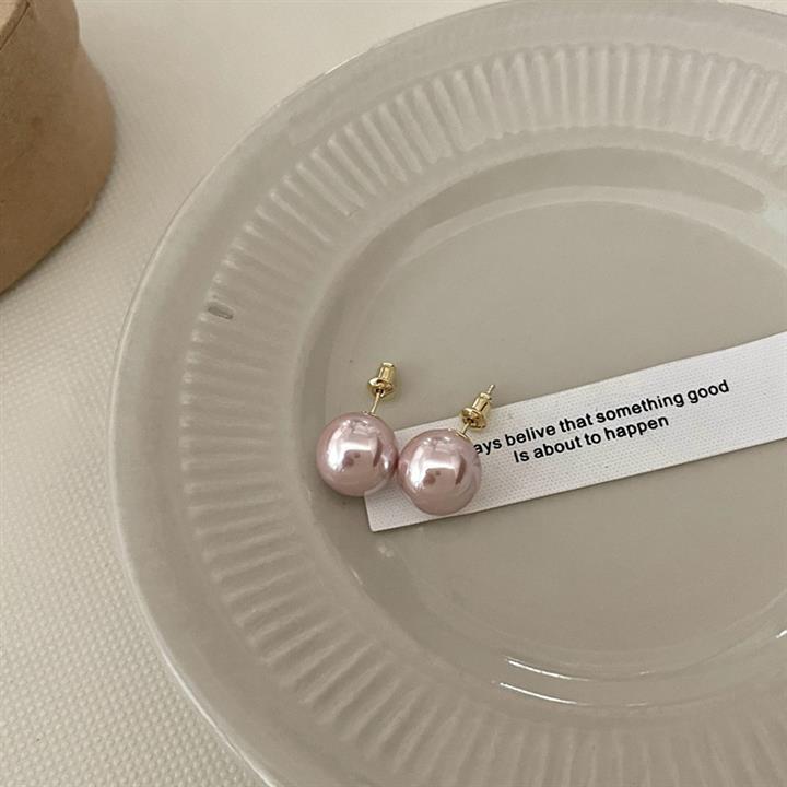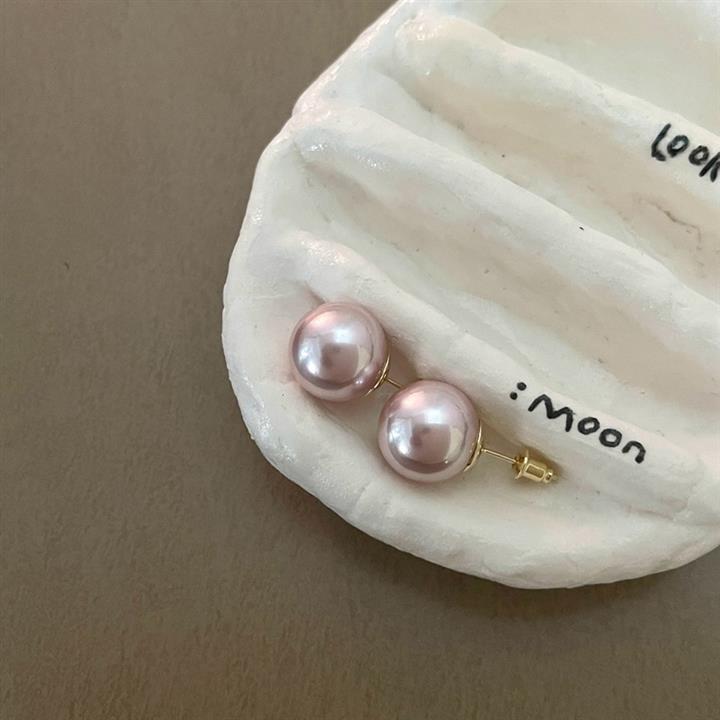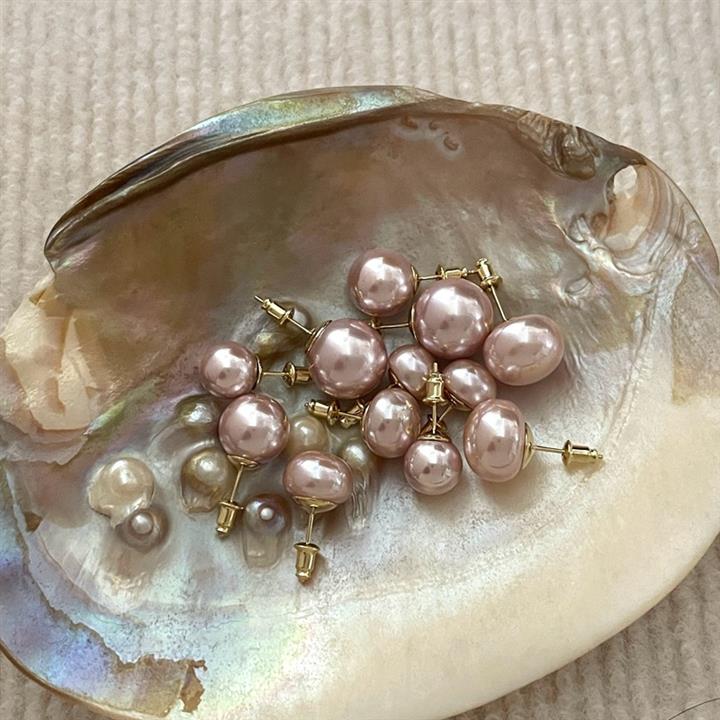 法式復古人魚姬粉饅頭珍珠耳釘jew16