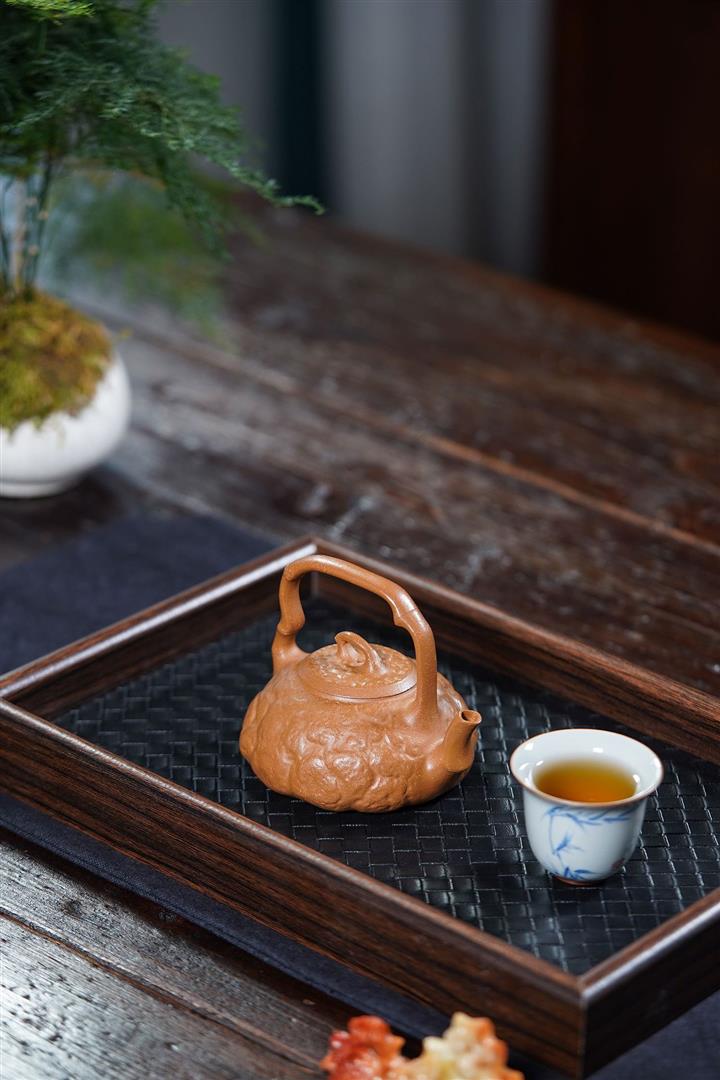 【泥料特點】砂土氣重,似淳實農民,日久使用,漸露鋒芒,養成變化,溫潤莊重。紫砂是壹種雙重氣孔結構的多孔性材質,氣孔微細,密度高。用紫砂壺沏茶,不失原味,且香不渙散,得茶之真香真味。紫砂使用越久,壺身色澤越發光亮照人,氣韻溫雅。紫砂壺長久使用器身會因撫摸擦拭,變得越發溫潤光澤。