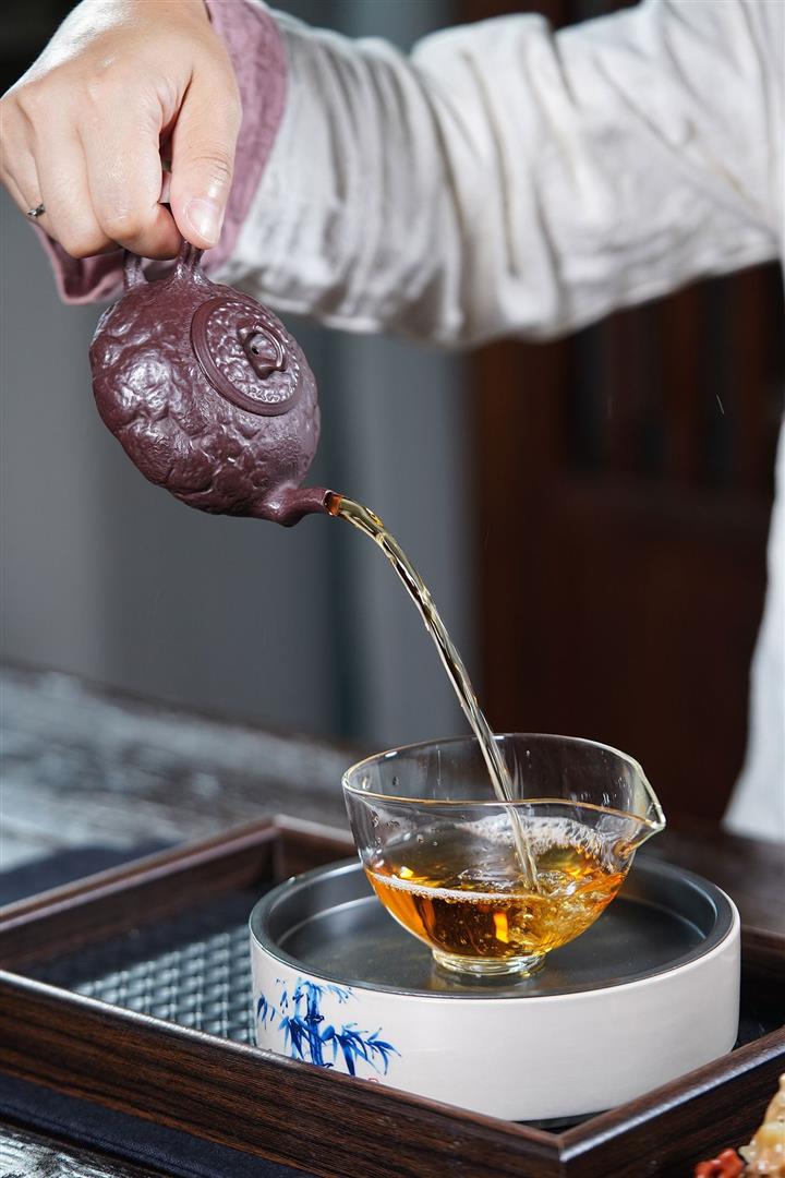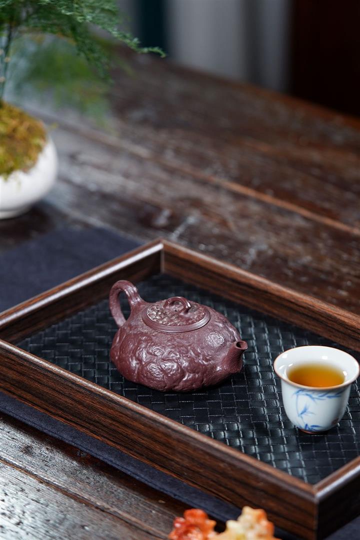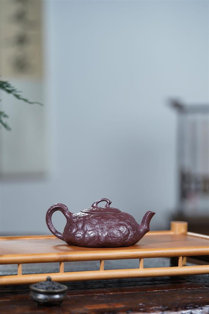 【泥料特點】砂土氣重,似淳實農民,日久使用,漸露鋒芒,養成變化,溫潤莊重。紫砂是壹種雙重氣孔結構的多孔性材質,氣孔微細,密度高。用紫砂壺沏茶,不失原味,且香不渙散,得茶之真香真味。紫砂使用越久,壺身色澤越發光亮照人,氣韻溫雅。紫砂壺長久使用器身會因撫摸擦拭,變得越發溫潤光澤。