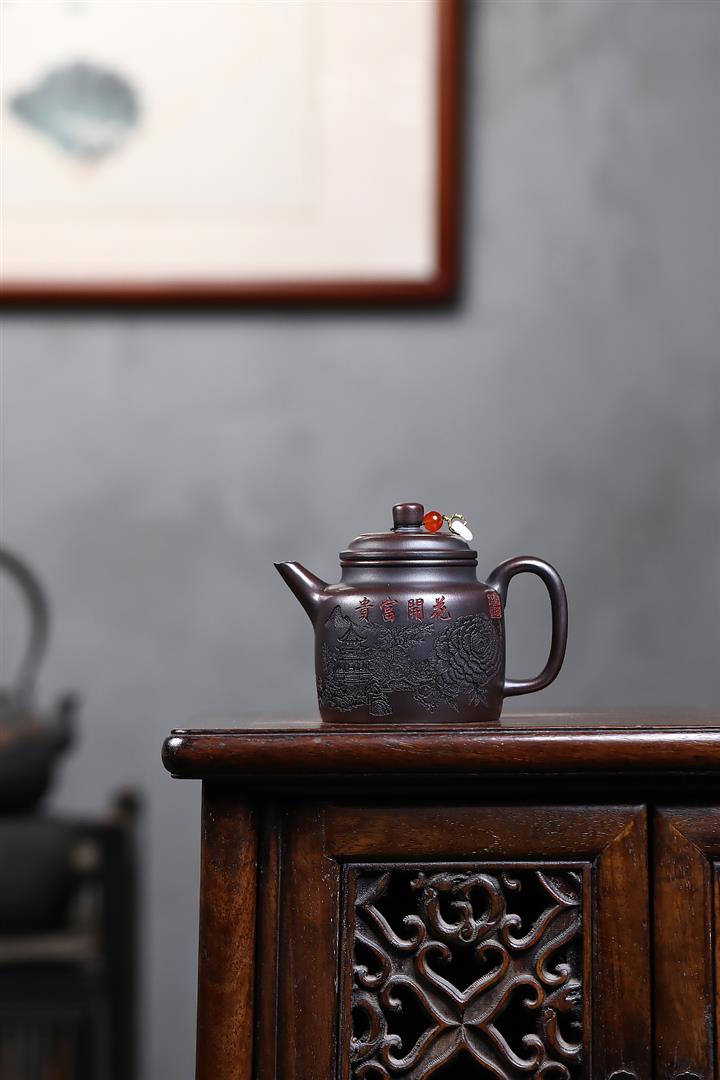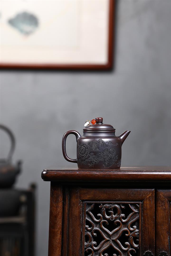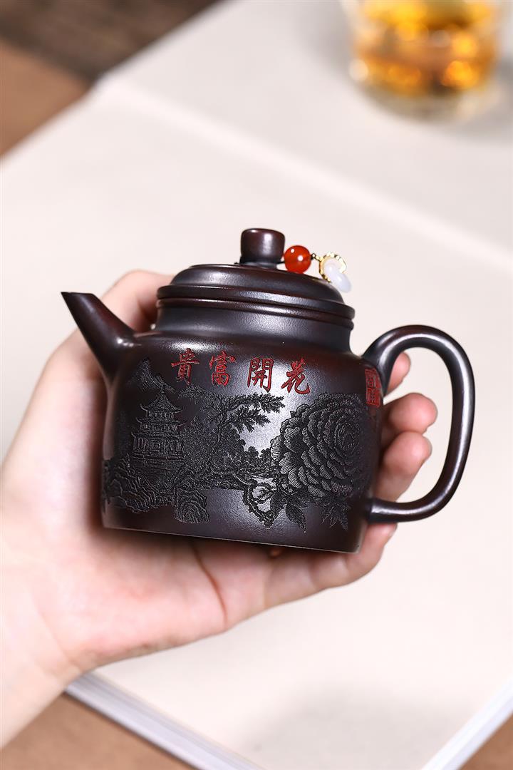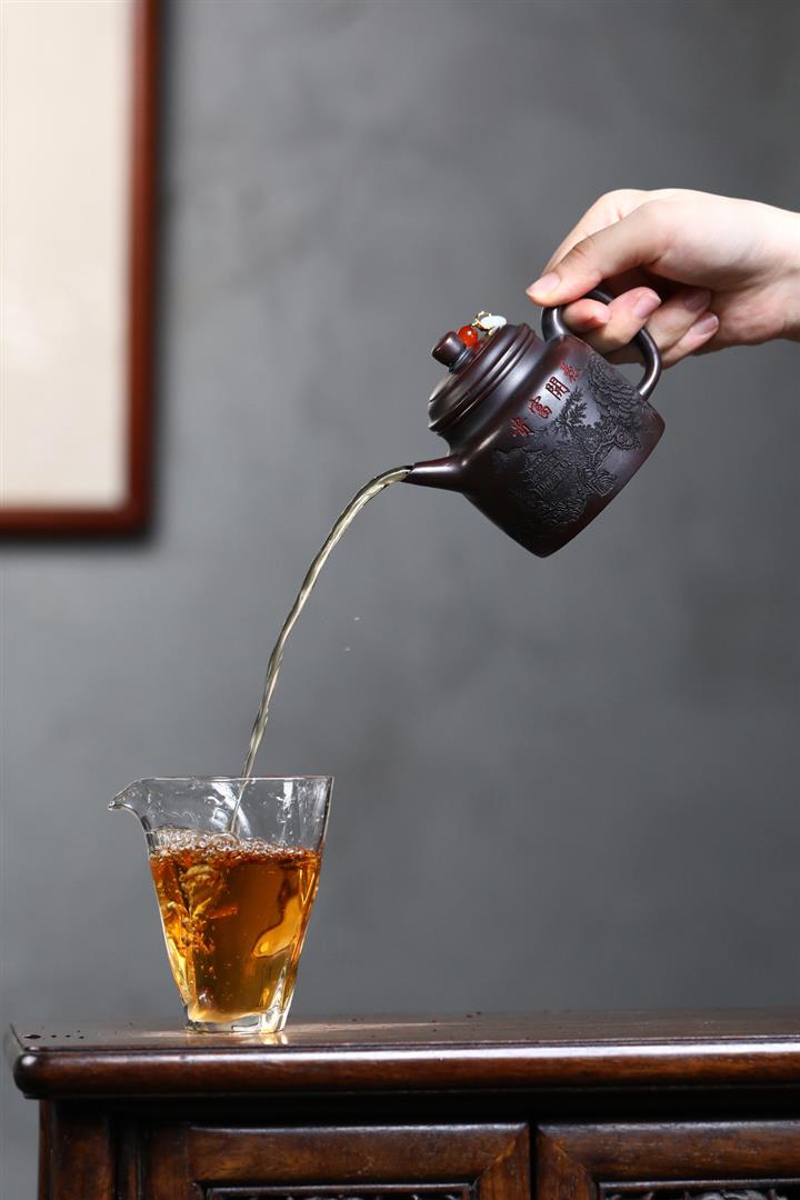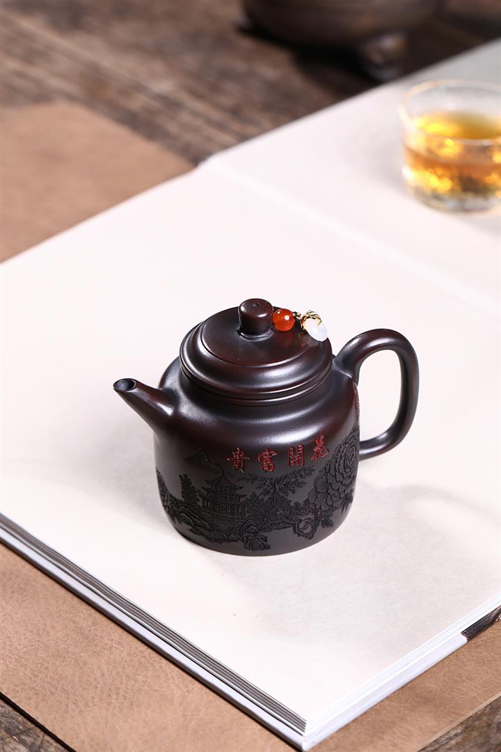 【泥料特點】砂土氣重,似淳實農民,日久使用,漸露鋒芒,養成變化,溫潤莊重。紫砂是壹種雙重氣孔結構的多孔性材質,氣孔微細,密度高。用紫砂壺沏茶,不失原味,且香不渙散,得茶之真香真味。紫砂使用越久,壺身色澤越發光亮照人,氣韻溫雅。紫砂壺長久使用器身會因撫摸擦拭,變得越發溫潤光澤。