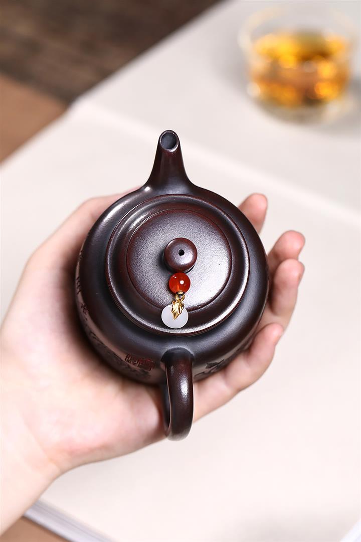 【作品介紹】此款壺形線條流暢,壺把,壺嘴,壺身壹氣呵成栩栩如生,是收藏把玩的好壺,泥料色澤古樸典雅,日久使用,漸露鋒芒,養成變化快,溫潤莊重,用其泡茶,使用的年代久,壺身就溫潤,泡出來的茶湯也就醇郁芳馨。