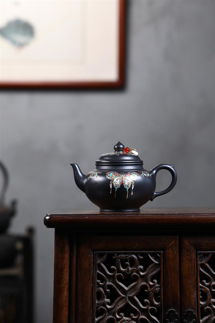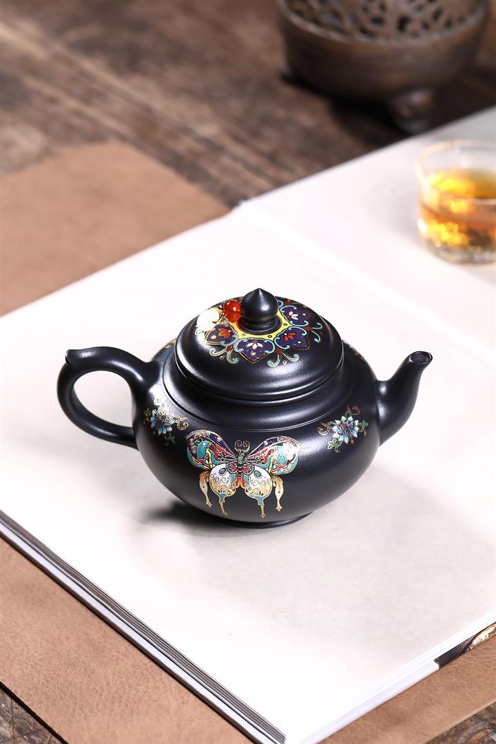 原礦玄鐵石黃琺瑯笑櫻泡茶壺POT7853