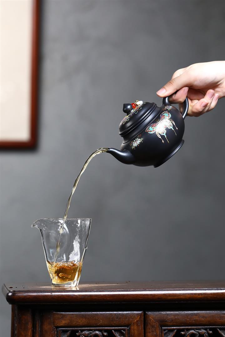 【作品介紹】此款壺形線條流暢,壺把,壺嘴,壺身壹氣呵成栩栩如生,是收藏把玩的好壺,泥料色澤古樸典雅,日久使用,漸露鋒芒,養成變化快,溫潤莊重,用其泡茶,使用的年代久,壺身就溫潤,泡出來的茶湯也就醇郁芳馨。