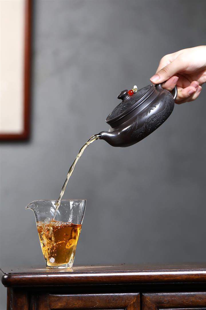 【作品介紹】此款壺形線條流暢,壺把,壺嘴,壺身壹氣呵成栩栩如生,是收藏把玩的好壺,泥料色澤古樸典雅,日久使用,漸露鋒芒,養成變化快,溫潤莊重,用其泡茶,使用的年代久,壺身就溫潤,泡出來的茶湯也就醇郁芳馨。