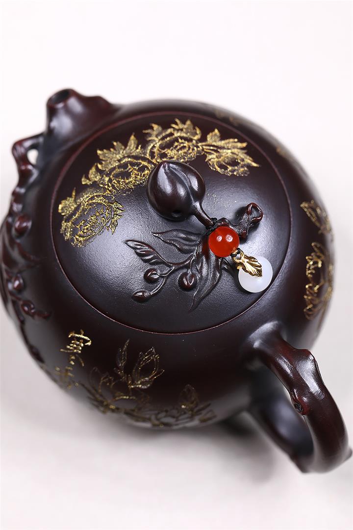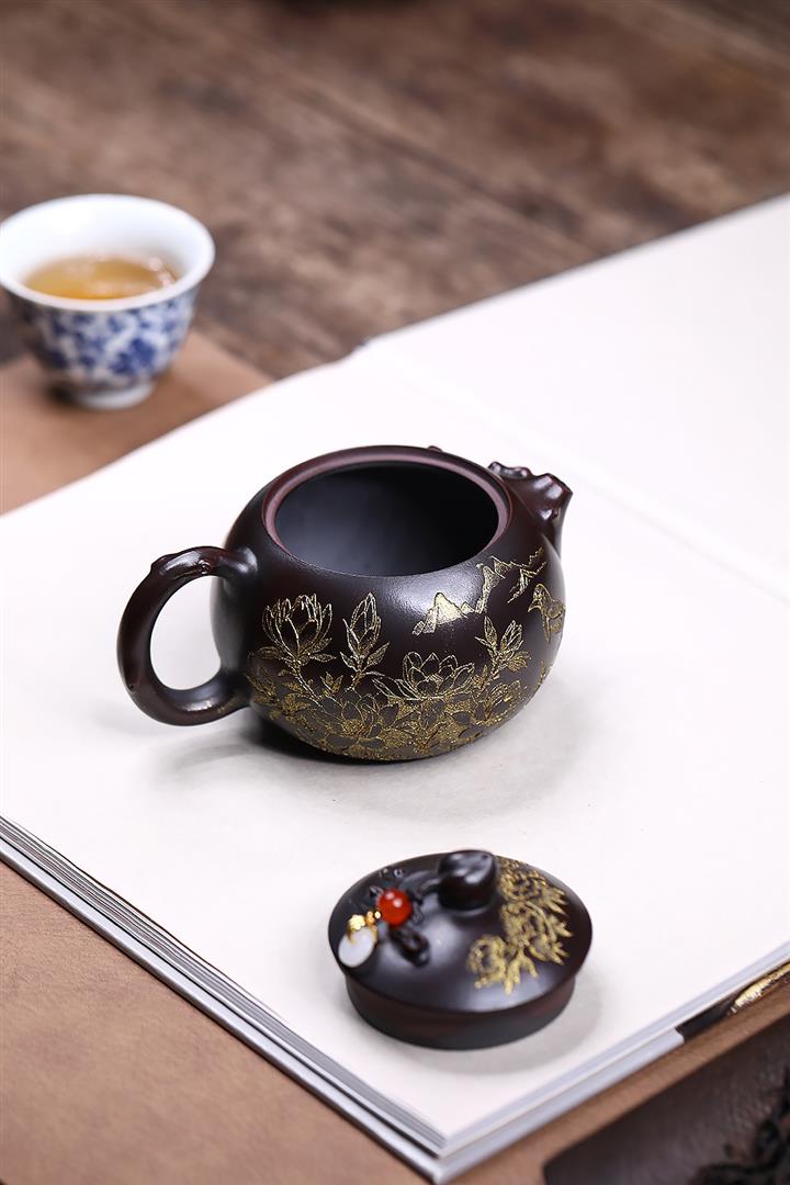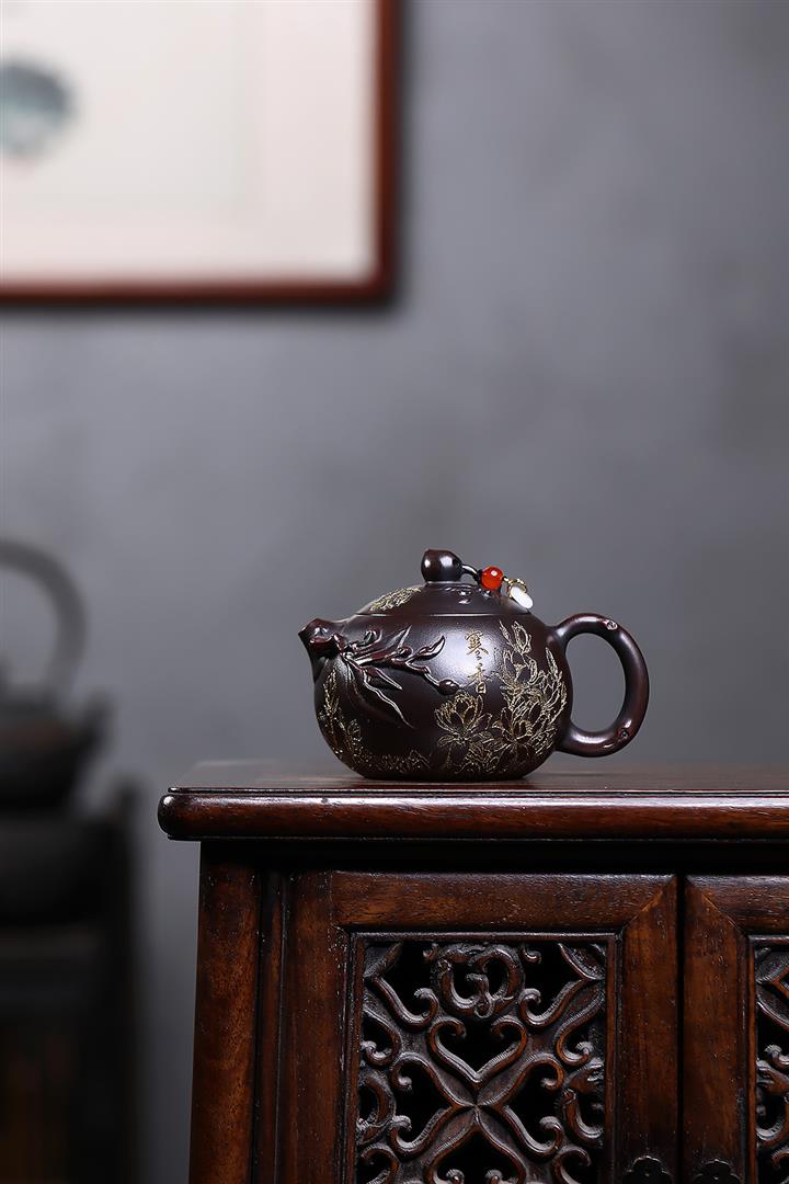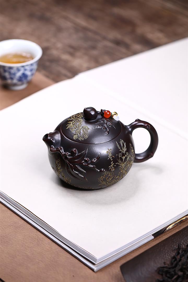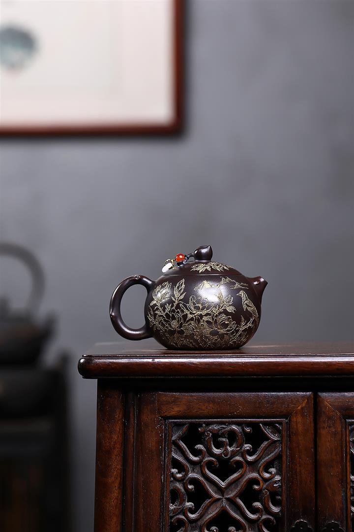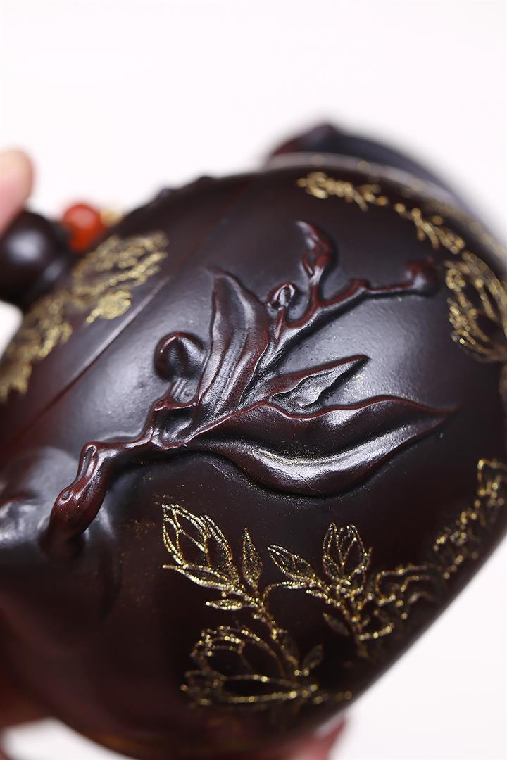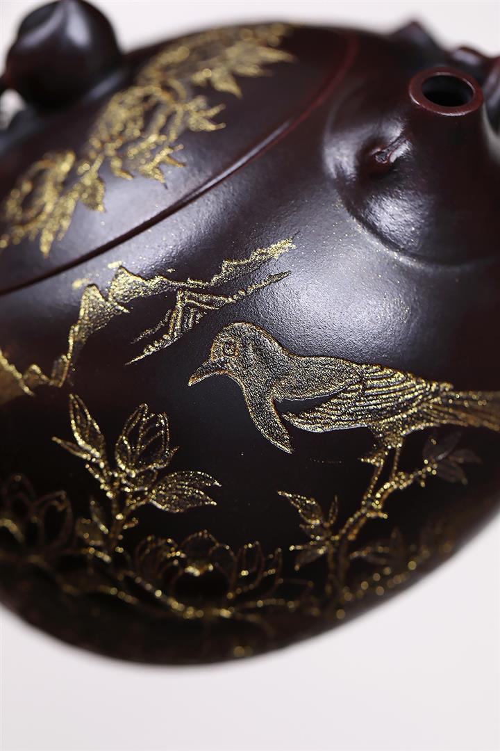 原礦古烏泥滿刻花鳥西施茶壺POT7817