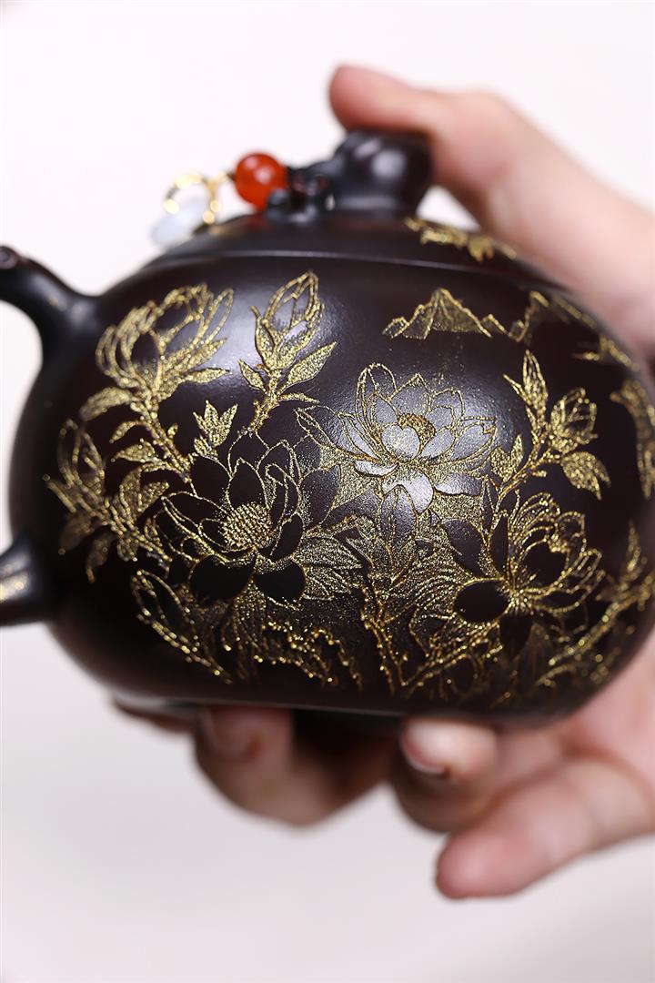 原礦百目紫泥描金文人掇只茶壺POT7814