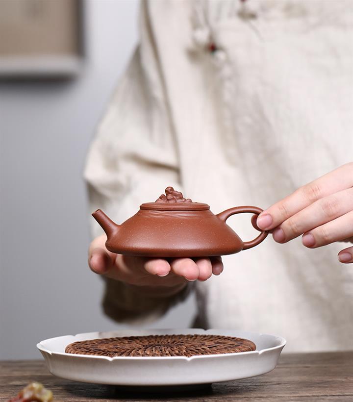 原礦紅降坡熊貓漢瓦茶壺POT7806