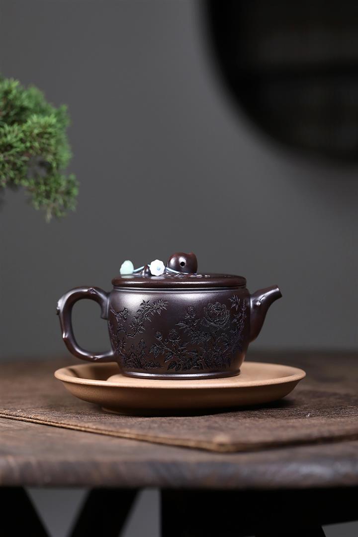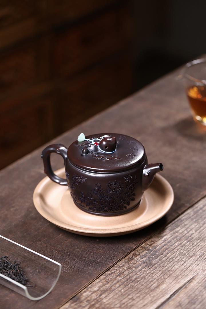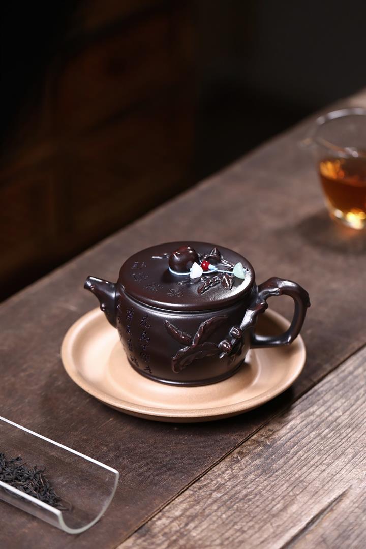 原礦紫朱泥鏤空笑櫻茶壺POT7801