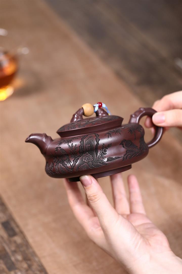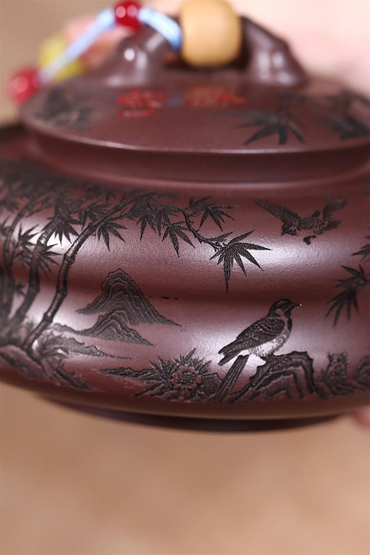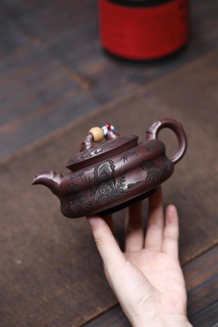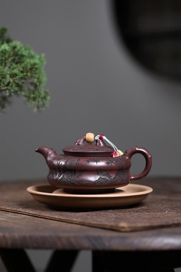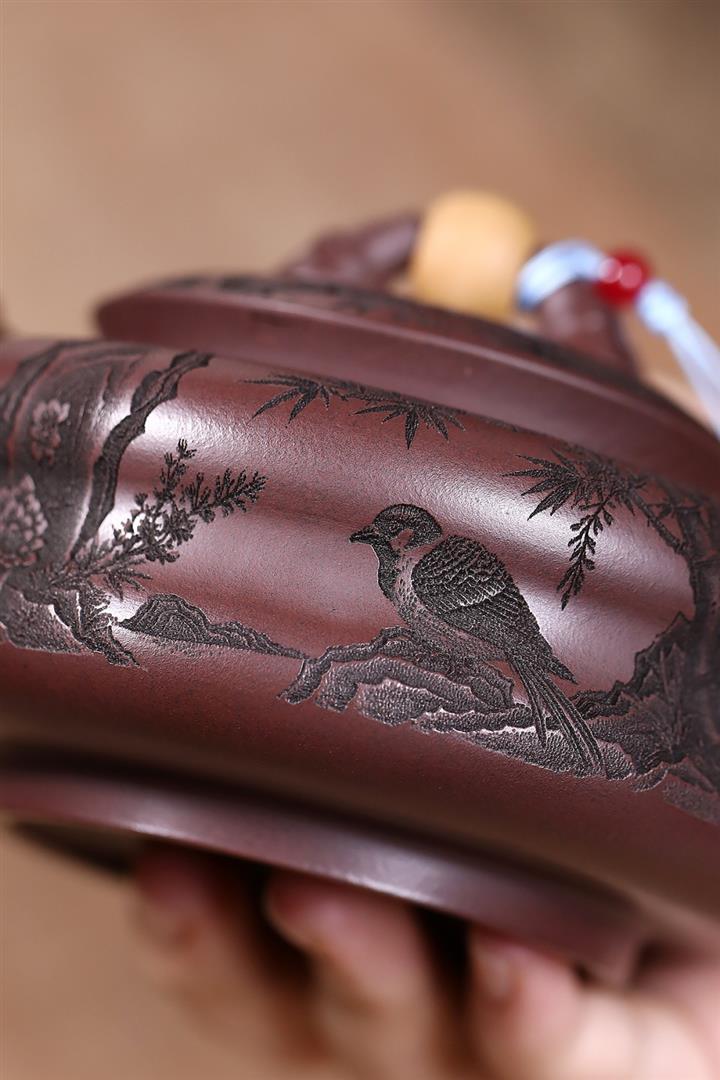 原礦紫朱泥鏤空笑櫻茶壺POT7801