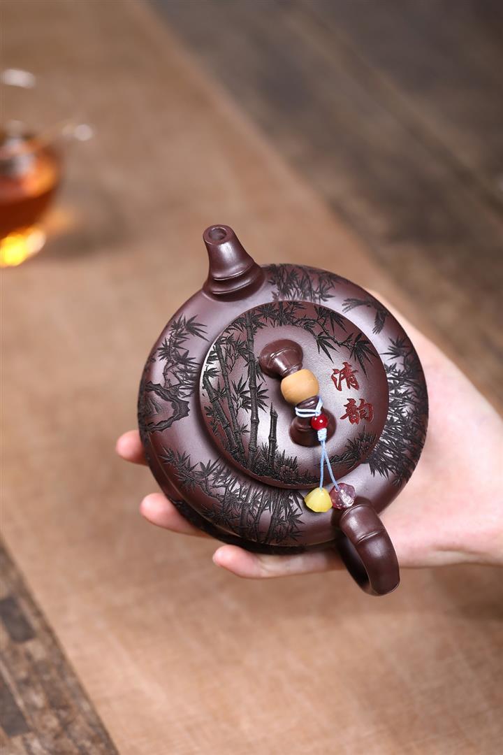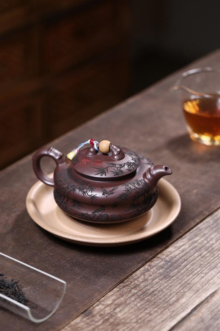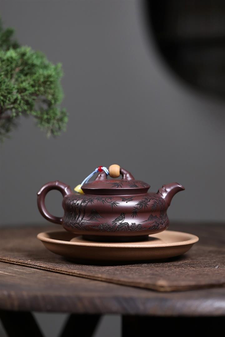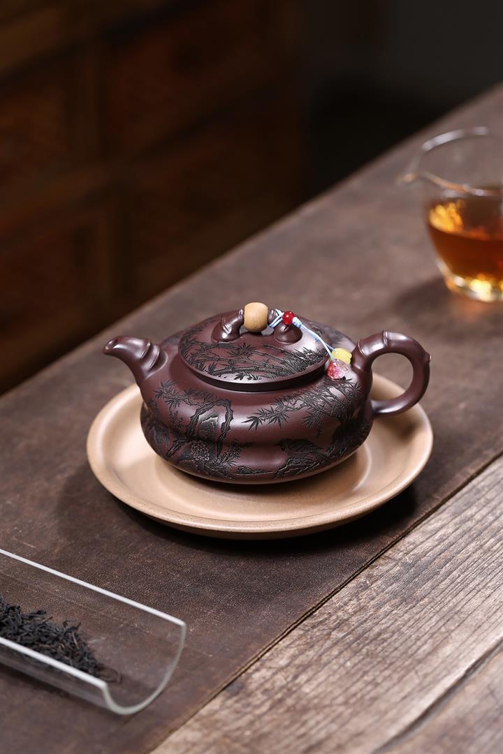 原礦綠泥琢砂竹報平安泡茶壺POT7879