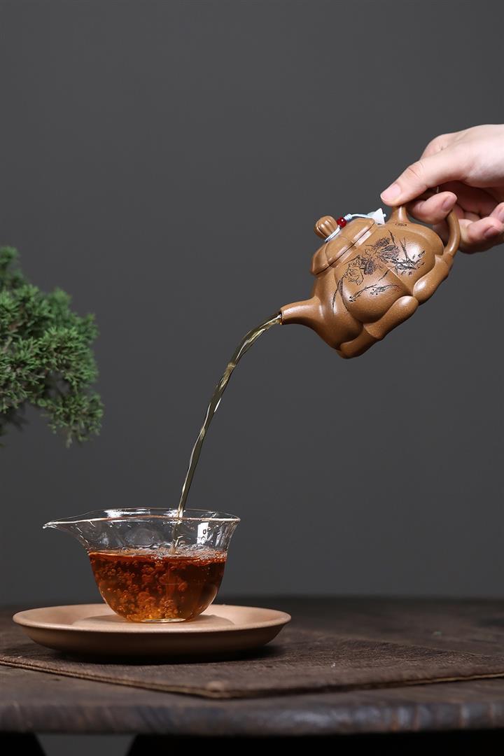 原礦紫朱泥鏤空笑櫻茶壺POT7801