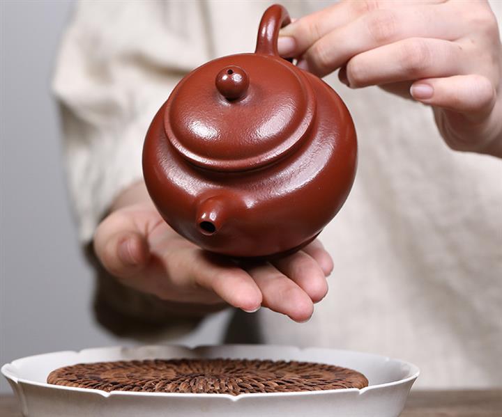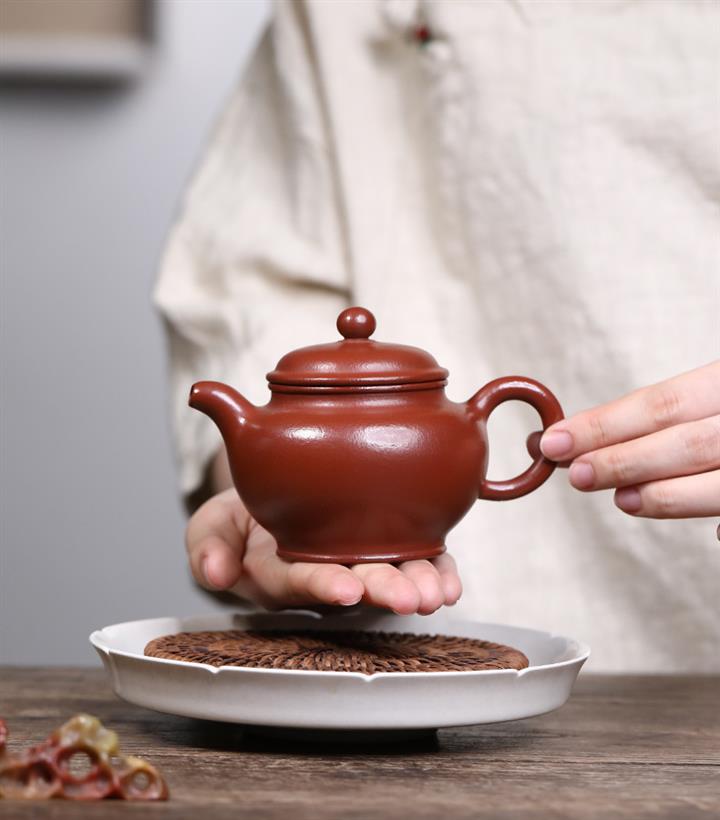 【泥料特點】砂土氣重,似淳實農民,日久使用,漸露鋒芒,養成變化,溫潤莊重。紫砂是壹種雙重氣孔結構的多孔性材質,氣孔微細,密度高。用紫砂壺沏茶,不失原味,且香不渙散,得茶之真香真味。紫砂使用越久,壺身色澤越發光亮照人,氣韻溫雅。紫砂壺長久使用器身會因撫摸擦拭,變得越發溫潤光澤。