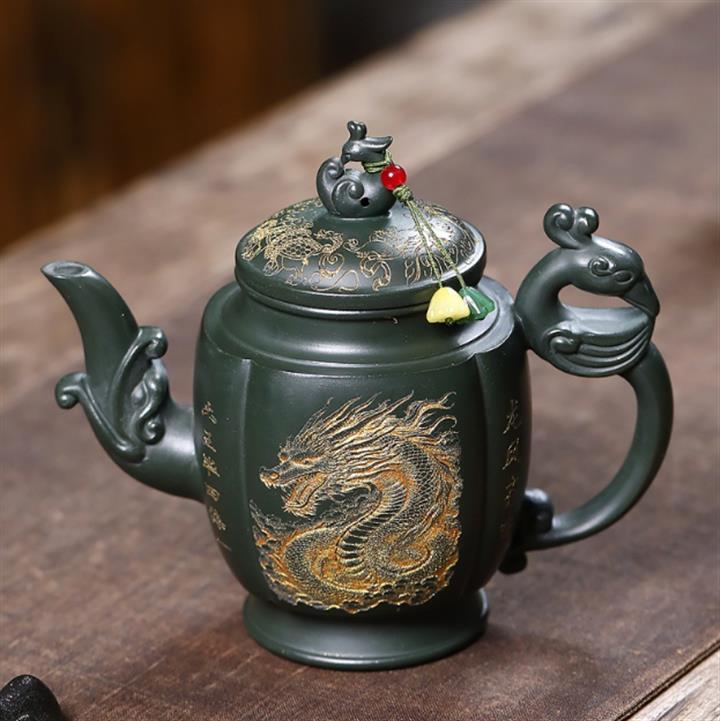 原礦墨綠泥龍鳳齊飛泡茶壺POT7845