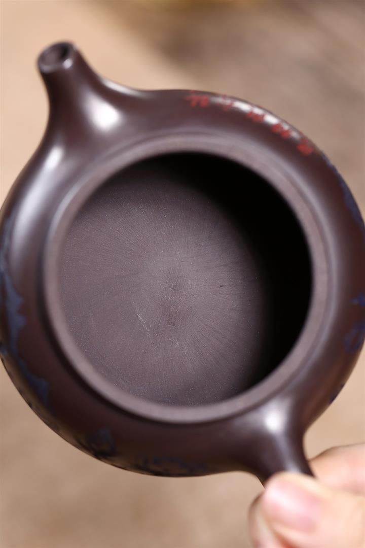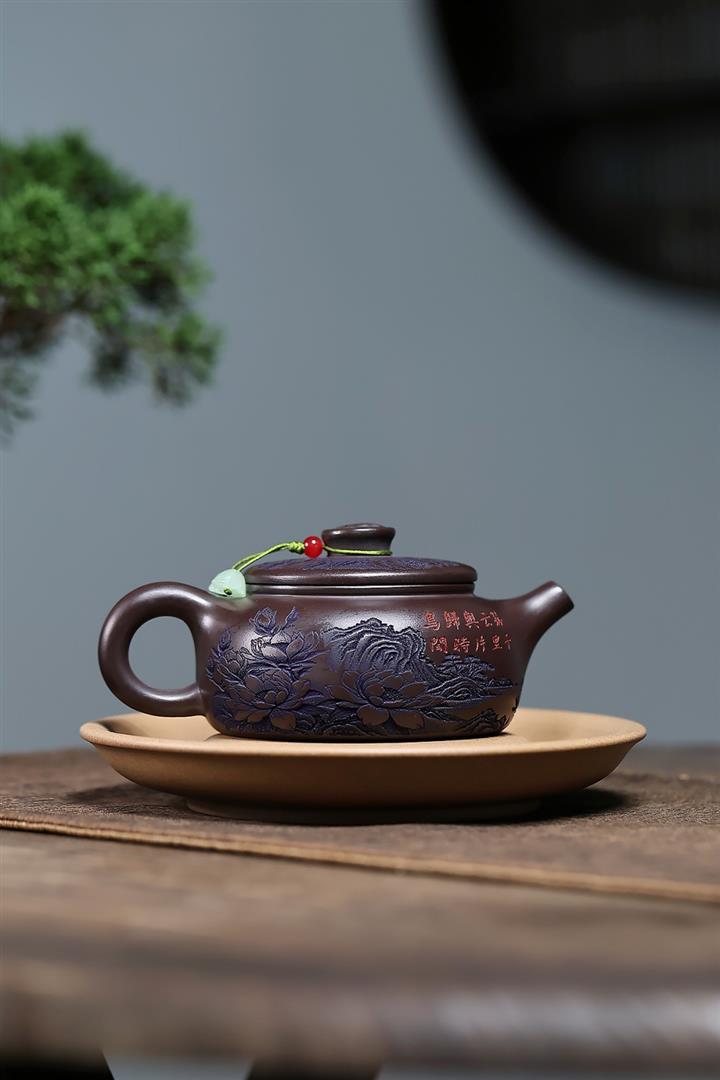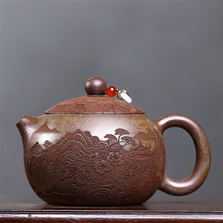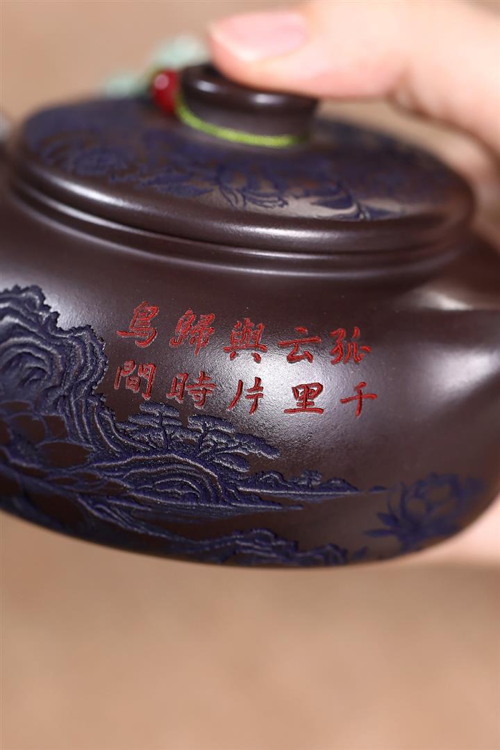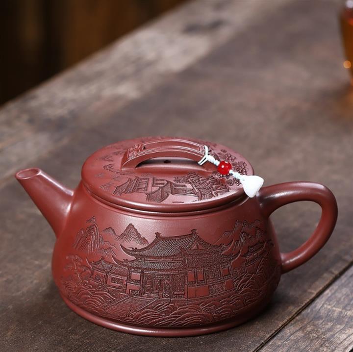 原礦紫泥刻繪山水德鐘茶壺POT7787