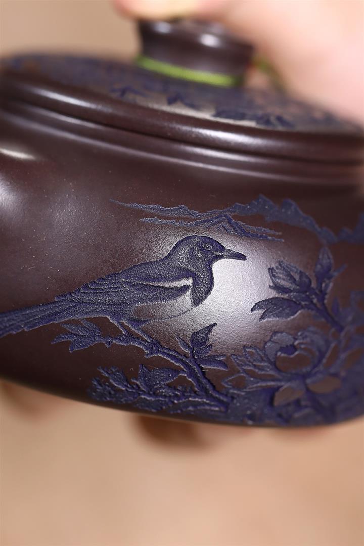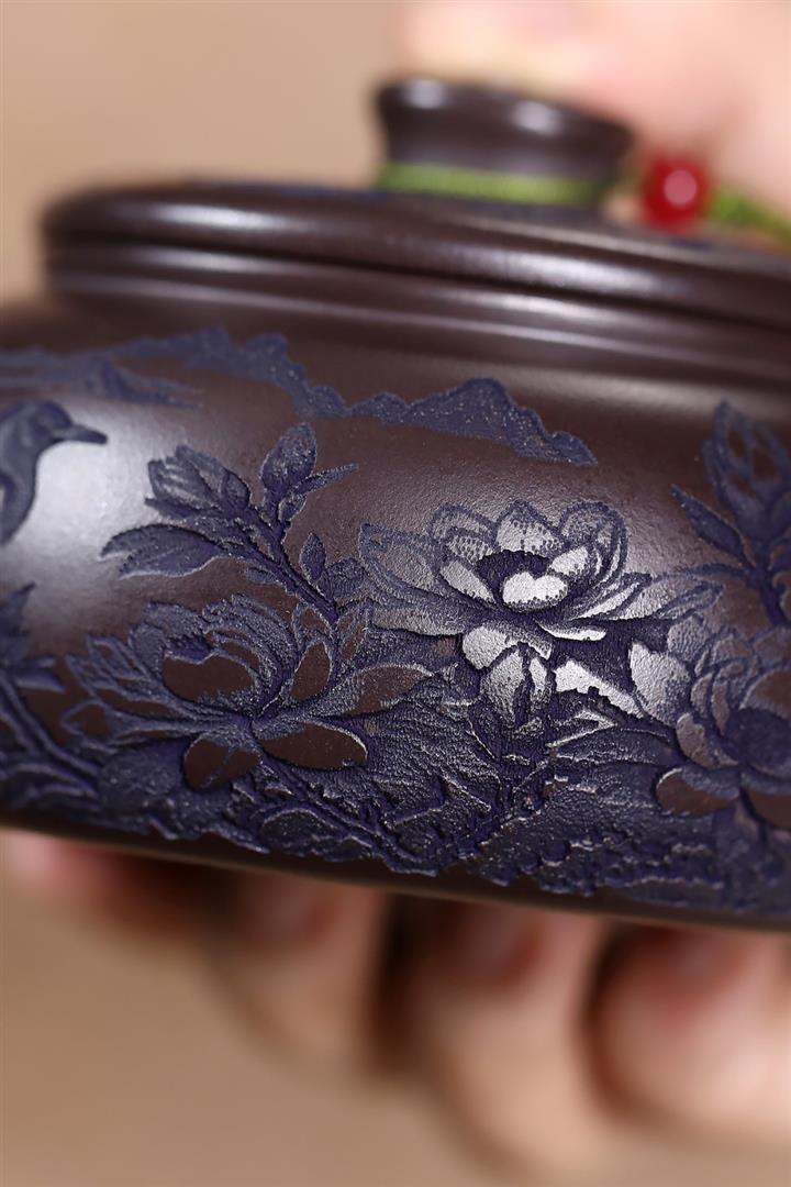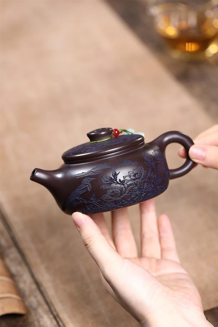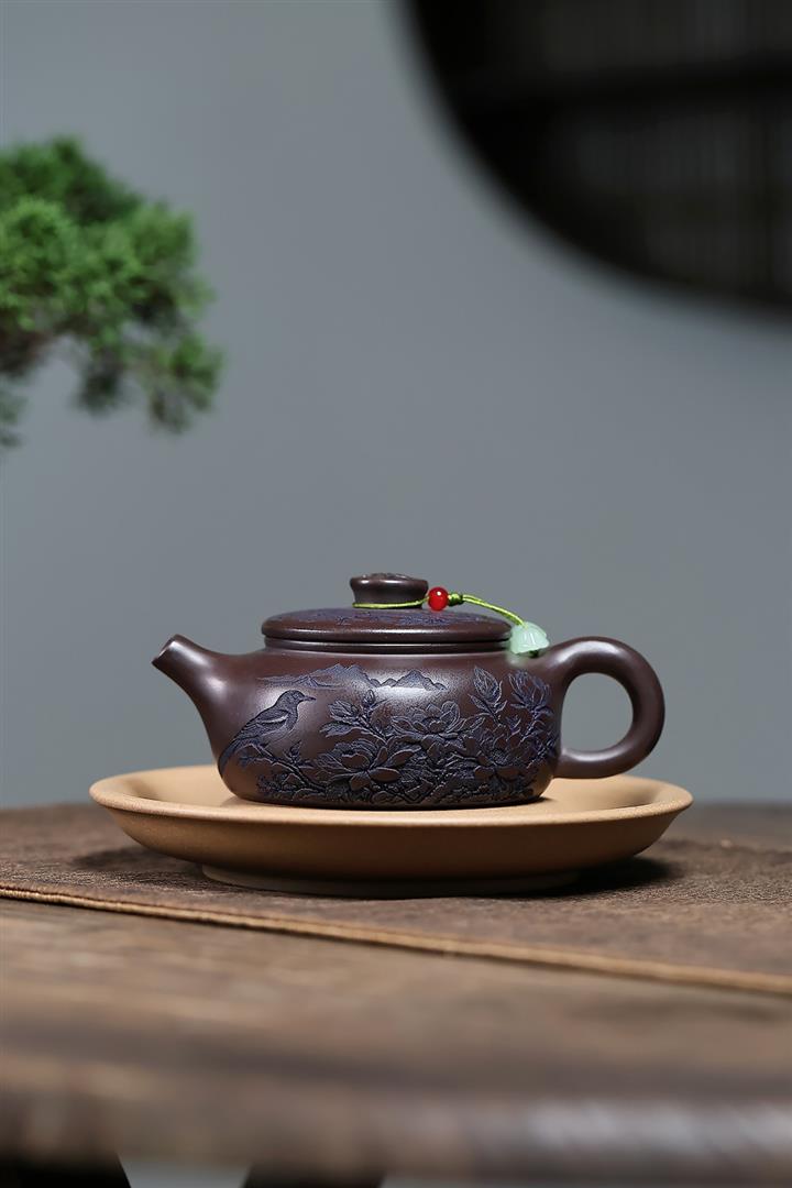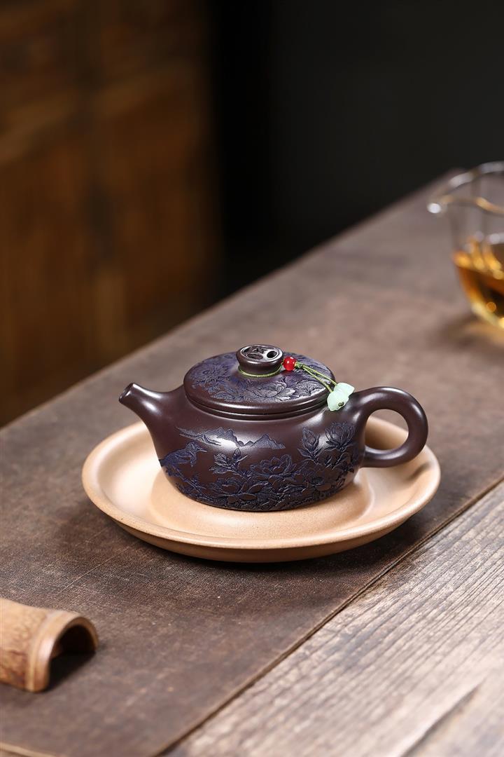 原礦紫泥刻繪山水德鐘茶壺POT7787